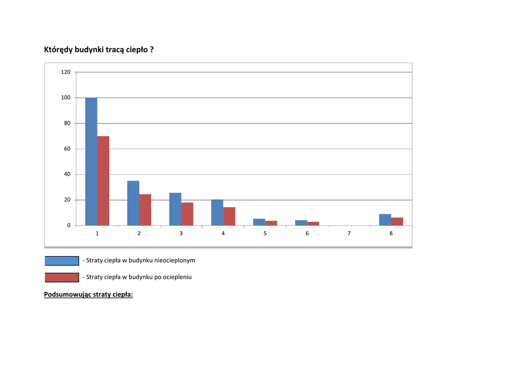 Którędy budynki tracą ciepło ? 120 100 80 60 40 20 0 1 2 3 - Straty ciepła w budynku nieocieplonym - Straty ciepła w budynku po ociepleniu Podsumowując straty ciepła: 4 5 6 7 8 1 – całkowite, 2- wentylacja 35 do 60%, 3- okna zewnętrzne18 do 26%, 4 – ściana zewnętrzna10 do 20%, 5 - drzwi wewnętrzne 5,4 -9,2%, 6 – strop ciepło do dołu 2,6 do 4,2 %, 7 - drzwi zewnętrzne 0,1 %, 8- stropodach wentylowany – 3,2 – 9 %. , Z punktu widzenia wymiany ciepła, ciepło oddaje budynek jako całość, nie poszczególne mieszkania. Ściany budynku kumulują ciepło z poszczególnych mieszkań (zarówno emitowane przez grzejniki jak i np. wydzielające się podczas gotowania posiłków czy innych codziennych aktywności) czy czynników zewnętrznych (np. nasłonecznienie). Dobrym przykładem wyjaśniającym tę zasadę jest rozpoczęcie okresu grzewczego. Przy temperaturach zewnętrznych pomiędzy 8 a 12 stopniami C, gdy nie włączone jest centralne ogrzewanie, temperatura w mieszkaniach systematycznie spada. Ściany budynku są wychłodzone, można więc uznać, że jest to graniczna temperatura zewnętrzna, przy której wszystkie wewnętrzne emisje ciepła wynikające z codziennej działalności są zbyt małe, by utrzymać w mieszkaniach temperaturę minimalną. Sytuacja zmienia się dopiero po nagrzaniu ścian budynku przy pomocy centralnego ogrzewania. Jako ciepło emitowane bezpośrednio na zewnątrz przez poszczególne mieszkania można uznać ciepło tracone przez okna (pojemność cieplna okien jest pomijalna w stosunku do pojemności cieplnej ścian), którego udział w stratach waha się pomiędzy 18 do 26 %. Zwraca uwagę duży udział strat ciepła wynikający z wentylacji pomieszczeń, do tej kategorii strat należy również zaliczyć straty ciepła na klatkach schodowych, przewietrzanie. Tak więc podstawową koniecznością jest utrzymanie ścian budynków w odpowiednio wysokiej temperaturze, pozwalającej na zapewnienie komfortowej temperatury w mieszkaniach. Stąd też biorą się założenia, że część ciepła dostarczanego do budynku ma charakter ogólnego zużycia nie powiązanego bezpośrednio z danym mieszkaniem i powinna być pokrywana solidarnie przez wszystkich mieszkańców, proporcjonalnie do powierzchni mieszkań (taką regulację prawną wprowadziły już niektóre kraje europejskie), a pozostałe ciepło związane jest bezpośrednio z indywidualnym zużyciem mieszkańców. Jak wygląda przepływ ciepła w budynku W przypadku, gdy temperatura w mieszkaniu jest wyższa niż temperatura ścian, ciepło wnika do ścian i ogrzewa ściany budynku, jest tam kumulowane i następnie oddawane na zewnątrz. Gdy temperatura w mieszkaniu jest równa lub niższa od temperatury ścian, ciepło w nich zakumulowane wraca do mieszkania. Gdy temperatury są podobne, ilość ciepła wydzielana przez grzejniki ucieka przez okna a reszta podtrzymuje temperaturę w pomieszczeniach. Dlaczego 25 % ? Podzielniki umożliwiają pomiar ciepła wydzielonego w mieszkaniu, natomiast nie są w stanie zarejestrować ciepła zużytego, czyli ciepła, które jest zgromadzone w ścianach a pozwala na utrzymanie temperatury wewnętrznej na żądanym poziomie. Pytanie, czy mamy płacić tylko za ciepło wydzielone czy ciepło zużyte ? Żadne zyski wewnętrzne czy zewnętrzne, nie są w stanie ogrzać mieszkania, przy temperaturze zewnętrznej poniżej 10 stopni, jeżeli ściany są zimne, gdy nie ma w nich skumulowanego ciepła. Obecnie obowiązujące normy izolacji budynków powodują, że po zakręceniu grzejników, nawet w niezamieszkałym mieszkaniu temperatura nie spadnie prawdopodobnie poniżej 15 stopni. To jest uzasadnienie rozważania ciepła zużytego, jako ciepła, którego koszty powinni pokrywać solidarnie wszyscy mieszkańcy danego bloku. Zgodnie z Polska Normą PN-EN 12831 ilość ciepła niezbędna na ogrzanie mieszkań w Polsce w sezonie grzewczym wynosi od 0,321 do 0,432 GJ na metr kwadratowy powierzchni mieszkalnej. W okresie sezonu 2012/2013 średnie zużycie ciepła wyniosło w przykładowych budynkach naszej Spółdzielni właśnie 0,327 GJ/m kwadratowy. Co to oznacza ? Docieplenie budynków wykonano zgodnie z obowiązującymi przepisami, po drugie, biorąc pod uwagę zasady rozpływu ciepła, utrzymanie minimum komfortu cieplnego w każdym mieszkaniu wymaga, by ciepło w nim wydzielone (wyemitowane przez grzejniki) było na tym poziomie. Oznacza to również to, że mieszkania, które wyemitowały mniej ciepła korzystają z energii cieplnej napływającej z innych mieszkań. Na wykresie poniżej pokazano dla przykładowego budynku, w ilu mieszkaniach emisja ciepła jest poniżej ilości traconego do otoczenia przez te mieszkania. Czerwona linia to średni poziom emisji ciepła w przeliczeniu na metr kwadratowy powierzchni mieszkania, pokrywający się z teoretycznymi wyliczeniami. 1,4 1,2 1 0,8 0,6 0,4 0,2 0 1 3 5 7 9 11 13 15 17 19 21 23 25 27 29 31 33 35 37 39 41 43 45 47 49 51 53 55 57 59 61 63 65 67 69 71 73 75 77 Z przeprowadzanych analiz instytucji analizujących zużycie ciepła (np. Instytut Techniki Budowlanej), w budynkach zbudowanych zgodnie z bieżącymi wymaganiami, ok. 60 % zużytego ciepła ma charakter zużycia ogólnego, pozostałe 40 % wynika z indywidualnych nastaw grzejników i idzie jedynie na ogrzanie danego mieszkania. 60,00 50,00 40,00 30,00 20,00 10,00 0,00 1 4 7 10 13 16 19 22 25 28 31 34 37 40 43 46 49 52 55 58 61 64 67 70 73 76 Jak widać z powyższego wykresu, ponad 50% mieszkań emituje zbyt dużo ciepła, więcej niż niezbędne do utrzymania komfortu cieplnego. Dlaczego ? Częściową odpowiedzią na to pytanie jest 30% mieszkań, które są niedogrzane, których mieszkańcy korzystają z ciepła emitowanego przez sąsiadów (poniżej czerwonej linii, która stanowi granicę 25% ciepła zużytego przez budynek), wykazując wręcz zerową emisję ciepła przez grzejniki. Nowe zasady rozliczania ciepła mają stworzyć bardzie