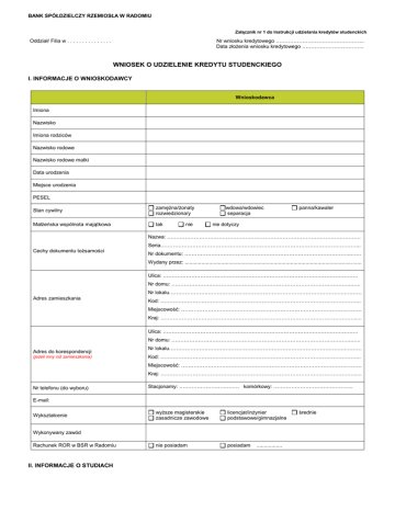 Wniosek kredytowy - Bank Spółdzielczy Rzemiosła w Radomiu
