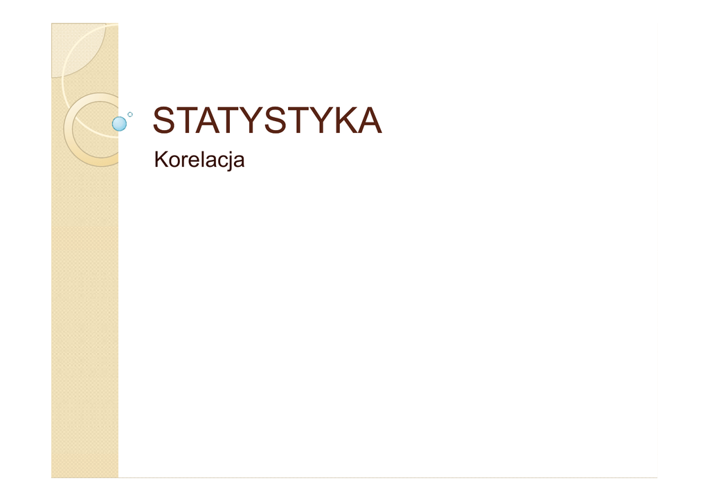 STATYSTYKA Korelacja Pojęcie korelacji Korelacja (współzależność cech) określa wzajemne powiązania pomiędzy wybranymi zmiennymi. Charakteryzując korelację dwóch cech podajemy dwa czynniki: kierunek oraz siłę. Rodzaje korelacji Ze względu na sposób analizy oraz charakter analizowanych zmiennych wyróżniamy: korelację prostą – badającą związek zachodzący pomiędzy dwoma cechami lub zjawiskami (rxy, r12), korelację cząstkową – informującą o związku dwóch cech z wyłączeniem trzeciej zmiennej (rxy.z, r12.H), korelację wieloraką – informującą o związku jednej cechy z kilkoma ujętymi łącznie (rx.yz, r1.2H). Interpretacja wyników korelacji Wyrazem liczbowym korelacji jest współczynnik korelacji (r lub R), zawierający się w przedziale [-1; 1]. korelacja dodatnia (wartość współczynnika korelacji od 0 do 1) – informuje, że wzrostowi wartości jednej cechy towarzyszy wzrost średnich wartości drugiej cechy, korelacja ujemna (wartość współczynnika korelacji od -1 do 0) - informuje, że wzrostowi wartości jednej cechy towarzyszy spadek średnich wartości drugiej cechy. Siła związków korelacyjnych poniżej 0,2 0,2 – 0,4 0,4 – 0,6 0,6 – 0,8 0,8 – 0,9 0,9 – 1,0 - korelacja słaba (praktycznie brak związku) - korelacja niska (zależność wyraźna) - korelacja umiarkowana (zależność istotna) - korelacja wysoka (zależność znaczna) - korelacja bardzo wysoka (zależność bardzo duża) - zależność praktycznie pełna NAJWAŻNIEJSZA JEST ISTOTNOŚĆ KORELACJI Korelacyjne wykresy rozrzutu zależność liniowa dodatnia (r>0) y x zależność liniowa ujemna (r<0) y x y brak zależności (r=0) x Współczynnik korelacji Pearsona Współczynnik ten wykorzystywany jest do badania związków prostoliniowych badanych zmiennych, w których zwiększenie wartości jednej z cech powoduje proporcjonalne zmiany średnich wartości drugiej cechy (wzrost lub spadek). Współczynnik ten obliczamy na podstawie wzoru: cov( x, y ) rxy = Sd x ⋅ Sd y ( x − x )( y − y ) ∑ cov( x, y ) = i i n Przykład Nr 1 Badaniu poddano długość kończyny dolnej (xi) oraz moc (yi) u siedmiu uczniów IV klasy szkoły podstawowej. Na podstawie poniższych danych oszacować współzależność obu analizowanych cech. xi 83,1 88,2 87,3 90,4 80,6 87,1 85,3 yi 41 45 42 52 52 46 47 W pierwszej kolejności należy wyliczyć: xi ; ӯyi ; Sdx ; Sdy oraz wartość kowariancji tabela pomocnicza xi xi- yi yi-ӯ ӯ (xi- )(yi-ӯ ӯ) (xi- )2 (yi-ӯ ӯ)2 83,1 41 -2,9 -5,4 15,66 8,41 29,16 88,2 45 2,2 -1,4 -3,08 4,84 1,96 87,3 42 1,3 -4,4 -5,72 1,69 19,36 90,4 52 4,4 5,6 24,64 19,36 31,36 80,6 52 -5,4 5,6 -30,24 29,16 31,36 87,1 46 1,1 -0,4 -0,44 1,21 0,16 85,3 47 -0,7 0,6 -0,42 0,49 0,36 Σ=602,0 Σ=325,0 Σ=-1,24 Σ=65,16 Σ=113,72 602 325 x= = 86; y = = 46, 4 7 7 Sd x = Sd y = 2 ( x − x ) ∑ i x n ∑(y − x ) i y n = 65,16 = 3, 05 7 = 113, 72 = 4, 03 7 2 ( x − x )( y − y ) −1, 24 ∑ cov( x, y ) = = = −0,18 i i n 7 cov( x, y ) −0,18 = = −0, 015 rxy = Sd x ⋅ Sd y 3, 05 ⋅ 4, 03 Interpretacja: wyliczony współczynnik korelacji wskazuje na brak związku długości kończyny z mocą objętych badaniem uczniów. Wskaźnik determinacji liniowej Na podstawie wyliczonego współczynnika korelacji obliczyć można tzw. wskaźnik determinacji liniowej, informujący o procencie wyjaśnionej liniowo zmienności zmiennej zależnej przez zmienną niezależną. Wskaźnik ten oblicza się na podstawie wzoru: WD = rxy ⋅100% 2 Zadanie Nr 1 Sportowców poddano badaniom szybkości reakcji na bodziec wzrokowy (yi) oraz badaniom wzroku (xi). Oszacować współzależność obu analizowanych cech. xi 3,5 3,4 2,1 5,4 1,1 5,1 6,9 4,0 4,5 2,5 yi 1,6 2,9 1,5 3,5 0,6 2,5 7,1 3,5 2,1 2,6 Tabela pomocnicza do zad. 1 xi yi xi- yi- (xi-)(y )(yi-) (xi-)2 (yi-)2 3,5 1,6 -0,35 -1,19 0,42 0,12 1,42 3,4 2,9 -0,45 0,11 -0,05 0,20 0,01 2,1 1,5 -1,75 -1,29 2,26 3,06 1,66 5,4 3,5 1,55 0,71 1,10 2,40 0,50 1,1 0,6 -2,75 -2,19 6,02 7,56 4,80 5,1 2,5 1,25 -0,29 -0,36 1,56 0,08 6,9 7,1 3,05 4,31 13,15 9,30 18,58 4 3,5 0,15 0,71 0,11 0,02 0,50 4,5 2,1 0,65 -0,69 -0,45 0,42 0,48 2,5 2,6 -1,35 -0,19 0,26 1,82 0,04 38,5 27,9 22,445 26,485 28,069 Interpretacja Występuje bardzo wysoka dodatnia korelacja pomiędzy analizowanymi cechami. Wzrostowi jakości wzroku towarzyszy wzrost szybkości reakcji. r=0,8232 ∈< 0,7;0,9) WD=67,77% Współczynnik R Spearmana Współczynnik korelacji rang Spearmana wykorzystywany jest do opisu siły korelacji dwóch cech, w przypadku gdy: ◦ cechy mają charakter jakościowy, pozwalający na uporządkowanie ze względu na siłę tej cechy, ◦ cechy mają charakter ilościowy, ale ich liczebność jest niewielka. n rS = 1 − di 2 6∑ d i 2 i =1 2 n(n − 1) - różnica pomiędzy rangami odpowiadających sobie wartości cech xi i yi Ranga jest to liczba odpowiadająca miejscu w uporządkowaniu każdej z cech. Jeśli w badanej zbiorowości jest więcej jednostek z identycznym natężeniem badanej cechy, to jednostkom tym przypisuje się identyczne rangi, licząc średnią arytmetyczną z rang przynależnych tym samym jednostkom. Współczynnik korelacji rang przyjmuje wartości z przedziału [-1; 1]. Interpretacja jest podobna do współczynnika korelacji liniowej Pearsona. Przykład Nr 2 Na podstawie opinii o zdrowiu 10 pacjentów wydanych przez dwóch lekarzy chcemy ustalić współzależność między tymi opiniami, które zostały wyrażone w punktach. 1 2 3 4 5 6 7 8 9 10 Punkty od I lekarza 42 27 36 33 24 47 39 52 43 37 Punkty od II lekarza 39 24 35 29 26 47 44 51 39 32 Nr Pacjenta 1 2 3 4 5 6 7 8 9 10 Rangi od I lekarza 7 2 4 3 1 9 6 10 8 5 Rangi od II lekarza 6,5 1 5 3 2 9 8 10 6,5 Nr Pacjenta 4 Tabela pomocnicza xi yi Ranga x Ranga y di d i2 42 39 7 6,5 0,5 0,25 27 24 2 1 1 1 36 35 4 5 -1 1 33 29 3 3 0 0 24 26 1 2 -1 1 47 47 9 9 0 0 39 44 6 8 -2 4 52 51 10 10 0 0 43 39 8 6,5 1,5 2,25 37 32 5 4 1 1 Σ 6 ⋅10,5 63 rS = 1 − = 1− = 0,936 10(100 − 1) 