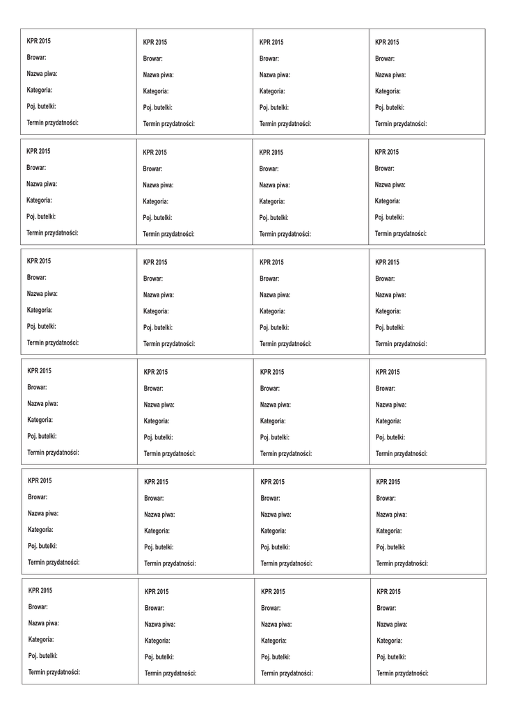 KPR 2015 Browar: Nazwa piwa: Kategoria: Poj. butelki: Termin