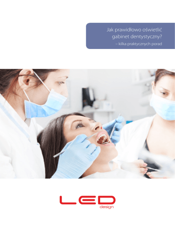 Jak prawidłowo oświetlić gabinet dentystyczny? – kilka praktycznych porad Jak prawidłowo oświetlić gabinet dentystyczny? Praca lekarza dentysty wiąże się z codzienną wielogodzinną pracą przy fotelu dentystycznym, która wymaga szczególnej precyzji, a przez to skupienia. Aby praca mogła być efektywna, lekarz potrzebuje dobrego oświetlenia pola pracy. Badania naukowe dowiodły, że wydajność pracy wzrasta przy dobrym oświetleniu. Dodatkowo ilość i jakość światła wpływa na to, jak się czujemy, pracujemy i jak odpoczywamy. Jak to wygląda w praktyce? W większości gabinetów stomatologicznych miejsce pracy jest bardzo niedoświetlone. Na podstawie doświadczeń i pomiarów przeprowadzonych przez firmę LED design w większości gabinetów poziom światła nie przekracza 500 luksów w polu pracy, a z reguły jest na poziomie od 200 do 300 luksów. Według polskiej normy PN-EN 12464-1 poziom światła w polu zabiegowym powinien wynosić 1000 luksów, a w samym polu operacyjnym 5000 luksów. Co wywołuje złe oświetlenie? ∙ szybsze zmęczenie, ∙ bóle głowy, ∙ łzawienie i zaczerwienienie powiek i spojówek, ∙ zmniejszenie zdolności akomodacji soczewki oka, ∙ zmniejszenie ostrości widzenia, wrażliwości na kontrasty i szybkości spostrzegania, ∙ pogorszenie samopoczucia, ∙ zwiększenie wypadkowości, obniżenie wydajności pracy. Dobre oświetlenie a wydajność pracy Dobre oświetlenie przekłada się bezpośrednio na wydajność pracy. Poniżej znajduje się wykres, który przedstawia tę zależność. Wraz ze wzrostem natężenia światła wzrasta wydajność pracy. Przy pracach trudnych dzieje się to zdecydowanie szybciej, niż przy pracach łatwych. Rys. Zależność wydajności pracy od natężenia oświetlenia. www.leddesign.pl Drugi wykres przedstawia nam zależność pomiędzy ilością światła, a ilością popełnianych błędów. Podczas wykonywania prostych czynności wzrost natężenia oświetlenia ma mały wpływ na ilość popełnianych błędów. Jest on natomiast bardzo duży przy czynnościach trudnych i złożonych. Dlatego ważne jest, aby poziom natężenia oświetlenia był dostosowany do rodzaju wykonywanej pracy. W przeciwnym wypadku ilość popełnianych błędów może prowadzić do poważnych strat i obniżenia wydajności pracy. Rys. Zależność redukcji błędów od natężenia oświetlenia. Z tych względów oświetlenie pola operacyjnego (jama ustna pacjenta), pola zabiegowego (przestrzeń wokół głowy pacjenta, w której porusza się lekarz podczas zabiegu), jak i całego gabinetu ma ogromne znaczenie. Najważniejsze parametry dobrego oświetlenia Od listopada 2003 roku obowiązuje nowa, europejska norma PN-EN 12464-1 dotycząca oświetlenia miejsc pracy wewnątrz pomieszczeń. Oto podstawowe wymogi dotyczące oświetlenia miejsc pracy: ∙ źródła światła o temperaturze barwowej 5000-5500 kelwinów, ∙ współczynnik rozróżnialności (oddawania) barw światła Ra równy 80 lub większy, ∙ oświetlenie pozbawione tętnienia lub inaczej migotania (efektu stroboskopowego). Ile powinno wynosić natężenie światła w miejscu pracy? Zgodnie z podaną normą natężenie oświetlenia powinno wynosić w poszczególnych miejscach nie mniej niż wartości podane w tabeli: oświetlenie ogólne na całej powierzchni gabinetu 500 luksów Ra min. 80 w polu pracy (w obrębie głowy pacjenta) 1000 luksów Ra min. 80 w polu zabiegowym (jama ustna) 5000 luksów Ra min. 80 www.leddesign.pl Oświetlenie dla pozostałych pomieszczeń powinno wynosić: poczekalnia 200 luksów Ra min. 60 korytarz 200 luksów Ra min. 40 łazienki i toalety 200 luksów Ra min. 40 pokoje personelu 300 luksów Ra min. 60 Dodatkowe zalecenia normy PN-EN 12464-1 Podstawowym oświetleniem pomieszczeń powinno być światło sufitowe, padające bezpośrednio z góry. Światło w gabinecie powinno pochodzić z kilku źródeł. Zapobiega to występowaniu w pomieszczeniu różnic w natężeniu światła czyli bardzo jasnych i ciemnych przestrzeni. W jednym pomieszczeniu należy stosować źródła światła o tej samej barwie: ∙ poczekalnie i pomieszczenia sanitarne: źródła światła o barwie ciepłej, białej - 3000 kelwinów, ∙ gabinety: źródła o barwie światła dziennego - od 5000 do 5500 kelwinów. Jak prawidłowo rozmieścić źródła światła w gabinecie? Gabinet o niewielkich rozmiarach do 12 m2 można oświetlić jedną lampą typu MED-light, która zapewnia wymagany poziom światła, umieszczając ją bezpośrednio nad unitem zabiegowym. W przypadku centralnego usytuowania unitu musimy pamiętać, aby umocowane źródło światła obejmowało głowę i tułów pacjenta. Poniżej rysunek, który przedstawia usytuowanie lampy: www.leddesign.pl W gabinetach o powierzchni powyżej 12 m2 powinniśmy zastosować kilka źródeł światła, obejmujących równomiernie całą powierzchnię gabinetu, gwarantując odpowiednie natężenie światła. Takie pomieszczenie oświetlamy lampą umiejscowioną bezpośrednio nad unitem oraz stosujemy lampy doświetlające o tych samych parametrach. Jaki rodzaj oświetlenia jest najczęściej stosowany w gabinetach dentystycznych? W gabinetach najczęściej stosuje się: ∙ światło jarzeniowe (świetlówki liniowe) jako światło ogólne, ∙ światło halogenowe jako światło punktowe. Od 2012 roku systematycznie na rynku pojawia się światło ledowe, które wypiera lampy jarzeniowe i halogenowe. Porównanie światła jarzeniowego w stosunku do światła LED: Jarzeniówka LED Po włączeniu rozgrzewają się kilka minut, zanim zaczną świecić pełną mocą. Po włączeniu świecą natychmiast pełną mocą. Gorsza jakość światła (nieciągłe widmo), szczególnie w wykonaniu z tanimi luminoforami. Lepsza charakterystyka widmowa (tylko LED wysokiej jakości). Wydajność świetlna lampy zależna jest od temperatury otoczenia. Szeroki zakres temperatury pracy od -40 do 70 °C. Duży spadek