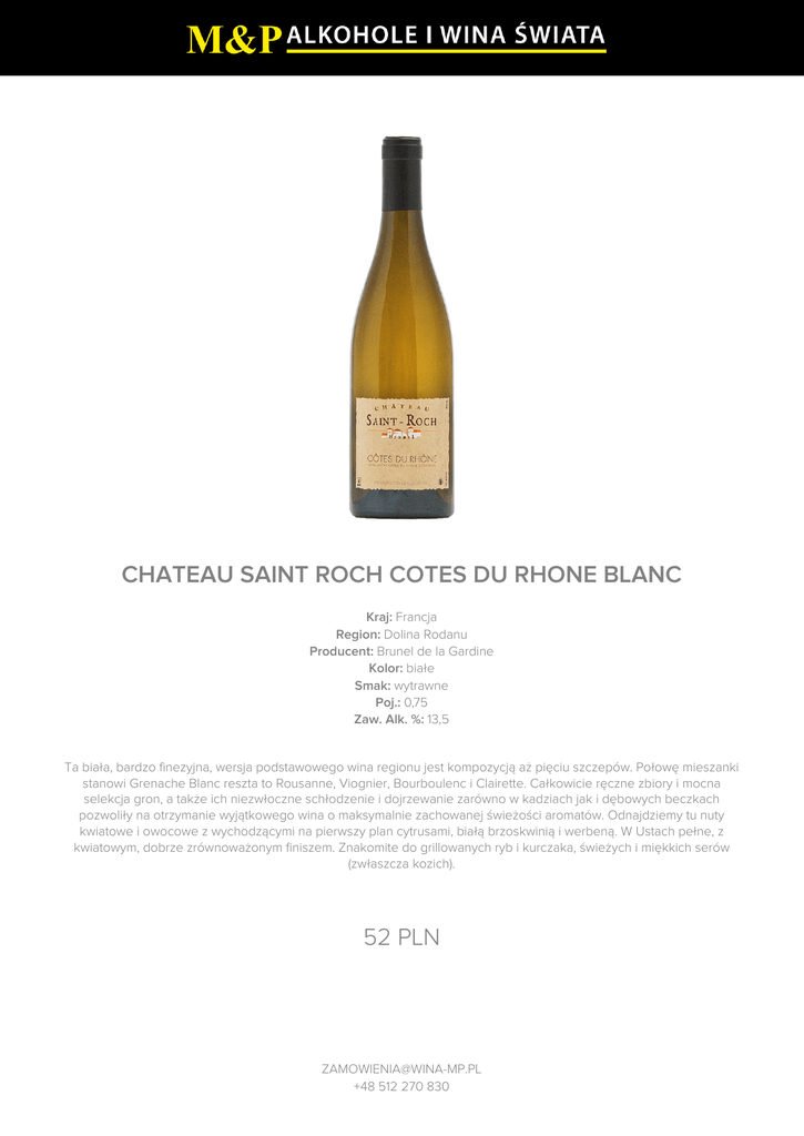 CHATEAU SAINT ROCH COTES DU RHONE BLANC 52 PLN