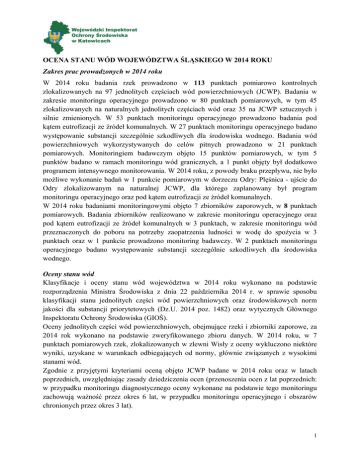 OCENA STANU WÓD WOJEWÓDZTWA ŚLĄSKIEGO W 2014