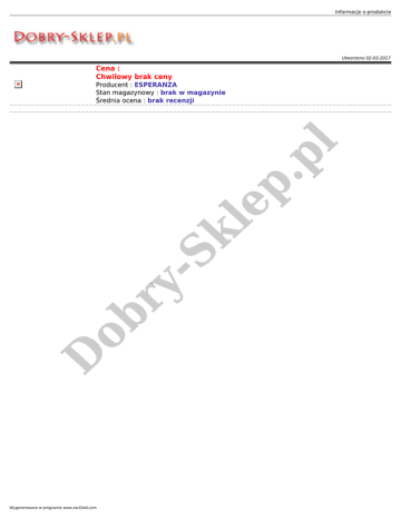 Informacje o produkcie Utworzono 02-03-2017 Cena : Chwilowy brak ceny D ob ry - Sk le p. pl Producent : ESPERANZA Stan magazynowy : brak w magazynie Średnia ocena : brak recenzji Wygenerowano w programie www.oscGold.com
