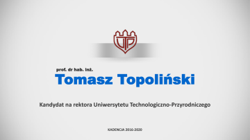 prof. dr hab. inż. Tomasz Topoliński Kandydat na rektora Uniwersytetu Technologiczno-Przyrodniczego KADENCJA 2016-2020 Tomasz Topoliński Pracownik Wydziału Inżynierii Mechanicznej Kierownik Zakładu Inżynierii Biomedycznej Senator UTP CV 1974 Absolwent III LO w Bydgoszczy Absolwent ATR w Bydgoszczy Habilitacja Politechnika Gdańska 1979 1998 1986 Doktorat Politechnika Gdańska 2010 Profesura UTP w Bydgoszczy Dorobek 137 22 8 35 442 Prac naukowych i naukowotechnicznych Patenty i wzory użytkowe objęte prawem wyłącznym Patentów i wzorów użytkowych zgłoszonych Prac na Web of Science Punkty MNiSzW w ostatnich 8 latach za publikacje Doświadczenie organizacyjne Prezes Fundacji Rozwój ATR Prorektor ds. organizacji i rozwoju ATR/UTP 1993-2005 2002-2008 1991-1993 Sekretarz rektora (Prof. Józefa Szali) 1999-2002 Prodziekan ds. nauki WM Członek Rady Fundacji Wspierania Kardiologii Kardiologia Bydgostiensis 2006-2013 1996-2016 2008Przewodniczący Senator ATR/UTP Rady Fundacji Konsonans Akademia Muzyczna Bydgoszcz Przewodniczący i członek wielu komisji senackich Pozyskane środki 450 000 PLN Maszyna wytrzymałościowa 295 000 PLN Grant KBN 20 000 PLN 4 500 000 PLN 6 240 000 PLN Patent plus - KBN Kierunek przyszłości – Inżynieria biomedyczna - POKL 137 871 EUR Inżynieria Telemedyczna - Fundusz Norweski 400 000 PLN Dewulkanizacja zużytych opon samochodowych - GEKON Inne Roczny pobyt w ramach stypendium DAAD w Erlangen-Nürnberg Universität w Niemczech 17 recenzji doktorskich, habilitacyjnych i profesorskich Recenzje do czasopism Fatigue and Fracture, Solid State Phenomena i wielu pism polskich Stała współpraca z Uniwersytetami w Tromso i Walencji oraz Fraunhofer Institut w Dreźnie Na ukończeniu wniosek w ramach Horizon 2020 z Fraunhofer Institut w Dreźnie, szpitalem w Lipsku i szpitalem w Ołomuńcu wraz z CM UMK z budżetem ok. 5 000 000 EUR Kalendarium inżynierii biomedycznej 2009 2010 2014 2014 2014 2015 2016 pozyskanie środków - 4,5 mln PLN - POKL pierwszy nabór na pierwszy rok studiów inżynierskich, zajęcia w CM UMK w oparciu o umowy cywilnoprawne pozyskanie środków – ponad 137 tyś. EUR na II stopień Inżynierii biomedycznej, Fundusz Norweski i uruchomienie II stopnia umowa o podjęciu wspólnego kształcenia na kierunku Inżynieria Biomedyczna przez CM UMK i WIM UTP, pierwsze niezależne nabory i uruchomienie wspólnego I roku studiów pierwsze dyplomy drugi wspólny nabór i wspólne kształcenie pierwsi absolwenci II stopnia Program Mój program obejmuje klasyczne dla uczelni obszary, ale myślą przewodnią jest GWARANCJA PRZYSZŁOŚCI dla wszystkich pracowników oraz oczywiście dla studentów, a zatem dla całej społeczności akademickiej Program Przedstawiany program GWARANCJA PRZYSZŁOŚCI powstał w oparciu o: potrzeby i oczekiwania pracowników i studentów, strategię rozwoju UTP, strategię miasta i województwa. Dydaktyka i kształcenie zapewnienie ciągłości kształcenia poprzez jeszcze większą aktywność rekrutacyjną, nie tylko odpowiedzialnych za to służb, ale każdego pracownika i studenta, który w każdej sytuacji o swojej Alma Mater powinien mówić dobrze i tylko dobrze udzielenie doraźnej pomocy tym wydziałom, które mają niedobór obciążeń dydaktycznych m.in. poprzez utworzenie nowych specjalności np. Transport Rolniczy czy Maszyny i Urządzenia Rolnicze na kierunku Transport WIM, może Budownictwo Rolnicze czy studiów podyplomowych, np. Rośliny Lecznicze we współpracy z CM UMK Dydaktyka i kształcenie starania o utworzenie Centrum Medycyny i Weterynarii Doświadczalnej, które powiąże współpracą WRiB, WHiBZ, WTIiE, WIM, IMF, WTiICh i CM UMK starania o utworzenie Centrum Inżynierii i Badań Sportu (UTP – IWFiS, WHiBZ, WTIiE, WIM; UKW i CM UMK) i może nowych kierunków: Techniki Rolniczej czy Ekorolnictwa, przy wykorzystaniu doświadczenia WBAiIŚ działania na rzecz zwiększenia atrakcyjności studiów kontynuacja otwartych ścieżek edukacyjnych w Azji i USA oraz dalsze umiędzynarodowienie studiów Studenci zapewnienie partnerskich form współpracy władz uczelni i wydziałów z samorządem i organizacjami studenckimi uznanie aktywności studenckiej jako bezpośredniej formy uzyskiwania społecznych umiejętności, stąd konieczność wspierania studentów w ich aktywności oraz zapewnienie im poczucia szeroko rozumianego bezpieczeństwa Studenci zapewnienie studentom wszelkich możliwych do uzyskania na uczelni certyfikatów, uprawnień i umiejętności otwierających nowe możliwości na rynku pracy włączenie części studentów w procesy dydaktyczne i badawcze kojarzenie studentów i pracodawców w zakresie odbywania praktyk i pracy weekendowej Praca i pracownicy przywrócenie godności pracy i pracownika Naszej Uczelni, przyjazna atmosfera pracy; poczucie przynależności do społeczności akademickiej z prawami, ale i obowiązkami wdrożenie systemu rozwoju własnej kadry poprzez kształcenie wewnętrzne i zewnętrzne racjonalna i pozbawiona automatyzmu polityka związana z przechodzeniem na emeryturę zarówno nauczycieli akademickich, jak i pozostałych pracowników racjonalizacja uzyskiwania zgód na dodatkowe zatrudnienie Nauka i badania prowadzenie badań: liderzy badań, tworzenie zespołów, wnioski o projekty działania stymulujące rozwój badawczej współpracy międzyuczelnianej w Bydgoszczy, w Polsce i za granicą międzywydziałowe i międzyuczelniane projekty badawcze, Horizon 2020!!! preferencje dla dobrych publikacji Infrastruktura pozostawienie obecnej struktury wydziałowej uczelni, o strukturze powinny decydować zainteresowane jednostki i ich dorobek pozostawienie obecnej lokacji wydziałów i skupienie się na poprawie warunków pracy tam, gdzie to jest niezbędne pozyskiwanie każdych możliwych środków na rozwój uczelni, w tym na nowe budynki w Fordonie podjęcie budowy od dawna oczekiwanego i obiecanego kompleksu sportowego w Fordonie Organizacja i zarządzanie, ws