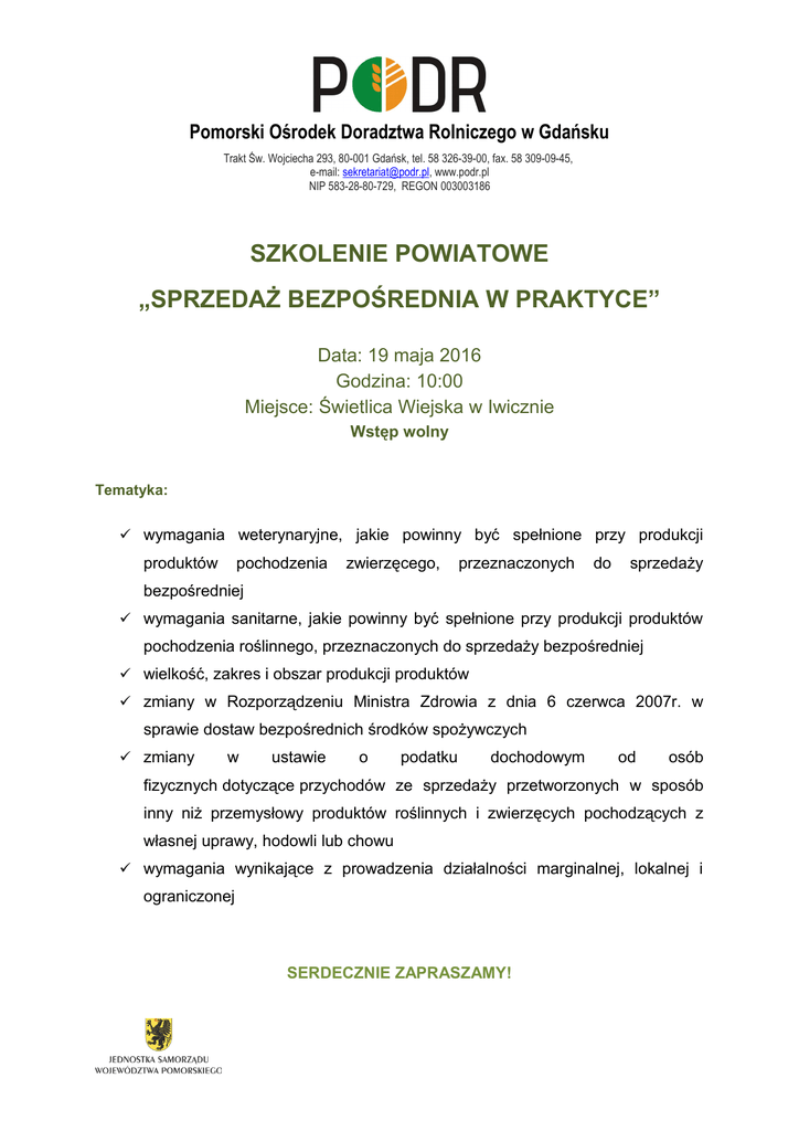SZKOLENIE POWIATOWE „SPRZEDAŻ BEZPOŚREDNIA W