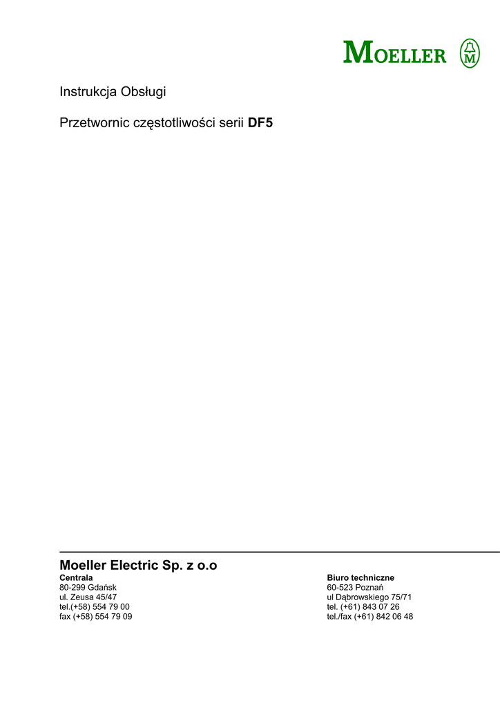 Instrukcja Obsługi Przetwornic częstotliwości serii DF5 Moeller
