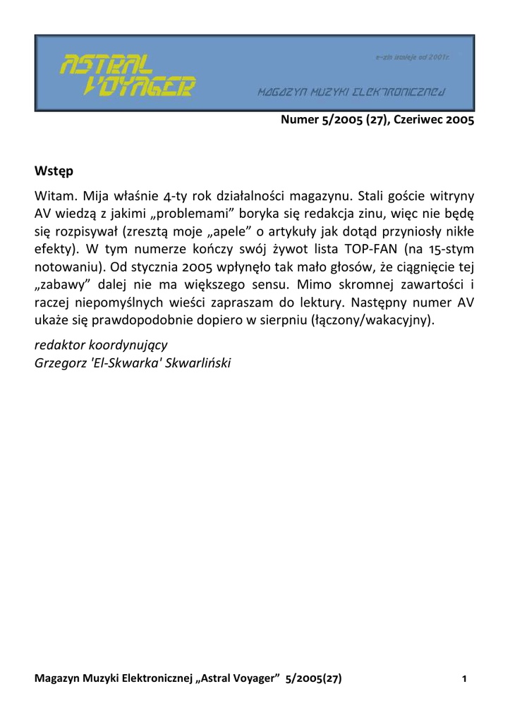 5/2005 (27) - Magazyn Muzyki Elektronicznej ASTRAL VOYAGER