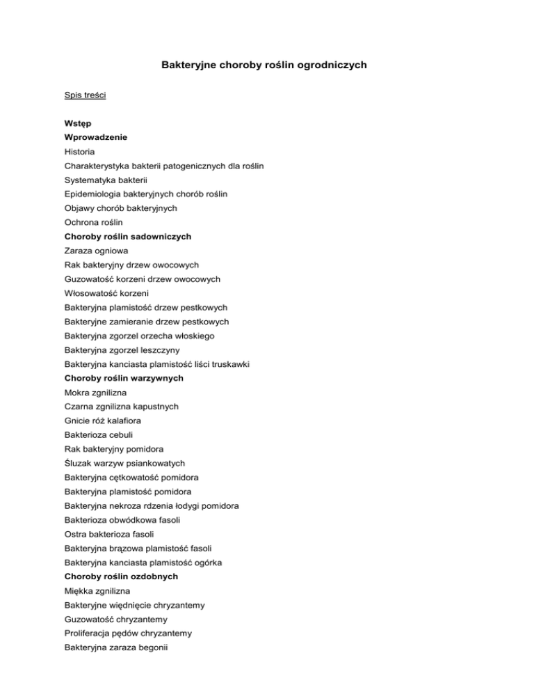 Bakteryjne choroby roślin ogrodniczych spis treści