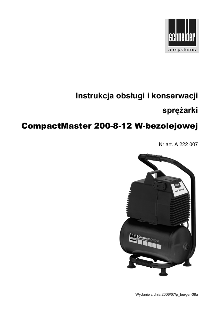 Instrukcja obsługi i konserwacji sprężarki CompactMaster 200-8