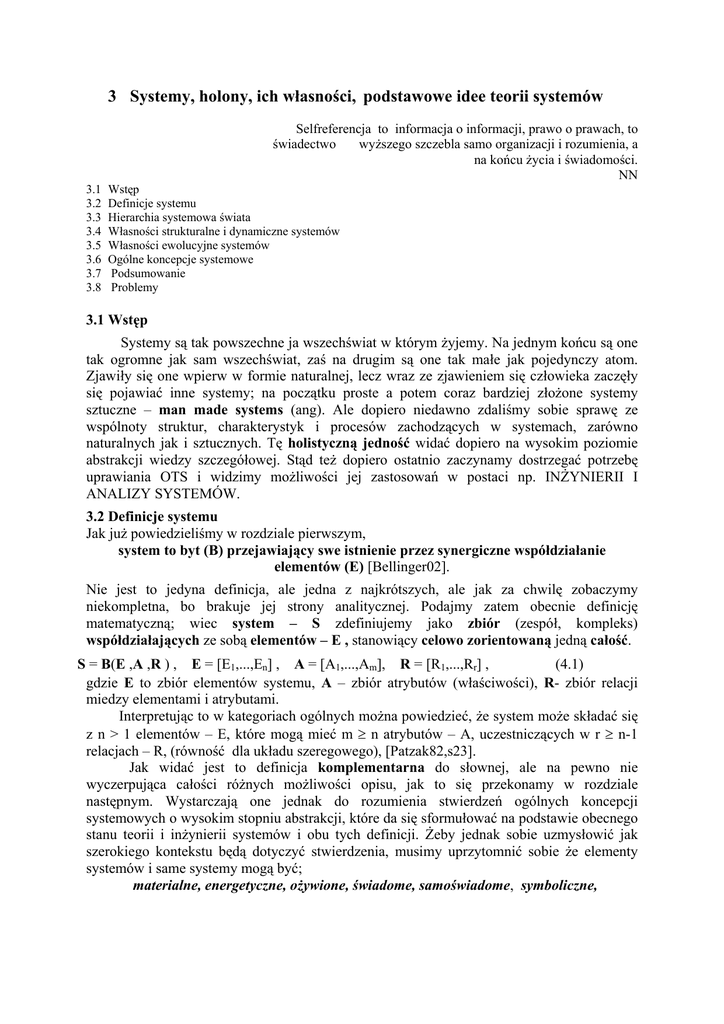 3 Systemy, holony, ich własności, podstawowe idee teorii systemów