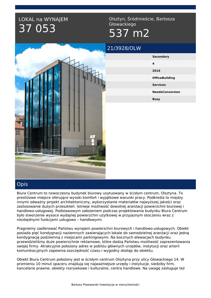 37 053 537 m2 - Bartosz Piwowarski Inwestycje w nieruchomości.
