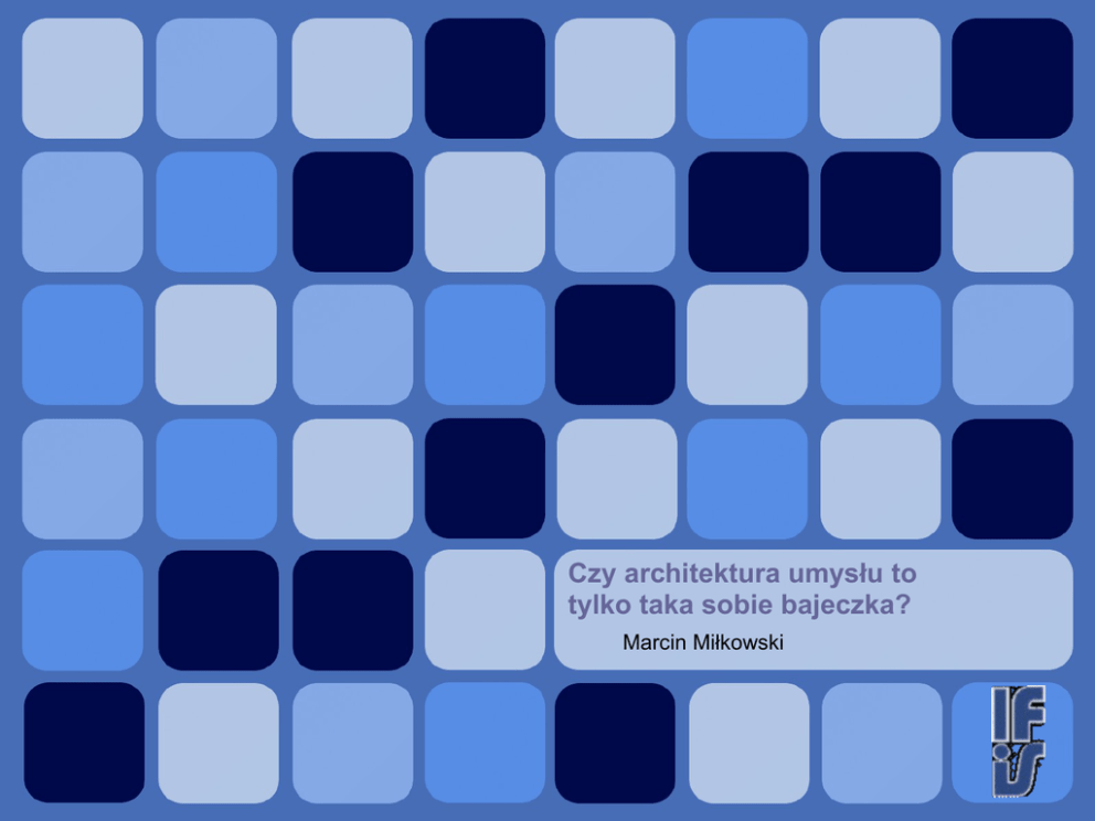 Czy architektura umysłu to tylko taka sobie bajeczka? Marcin Miłkowski Architektura umysłu • Pojęcie używane przez prawie wszystkie współczesne ujęcia kognitywistyki Umysł Przetwornik informacji 2 Architektura umysłu – komputacjonizm • Przetwornik informacji → urządzenie obliczeniowe Przetwornik informacji 3 Architektura umysłu – komputacjonizm • Urządzenie obliczeniowe a modularność umysłu? ? 4 Architektura umysłu – wewnętrzna struktura funkcjonalna ● Przez „architekturę” należy rozumieć hierarchiczną strukturę wieloczęściowego układu złożonego. ● 5 Architektura umysłu – wewnętrzna struktura funkcjonalna ● ● Przez „architekturę” należy rozumieć hierarchiczną strukturę wieloczęściowego układu złożonego. Hierarchię definiuje się przez częstość interakcji między częściami. W systemach fizycznych i biologicznych interakcje często towarzyszą bliskości czasoprzestrzennej, ale nie jest to warunek konieczny. 6 Architektura umysłu – wewnętrzna struktura funkcjonalna ● ● ● Przez „architekturę” należy rozumieć hierarchiczną strukturę wieloczęściowego układu złożonego. Hierarchię definiuje się przez częstość interakcji między częściami. Moduły można uznać za pewien rodzaj części układów względnie rozkładalnych (near decomposable systems), tj. mających własności emergentne, lecz w których możliwe jest wyróżnienie względnie izolowanych subsystemów. 7 Architektura umysłu – wewnętrzna struktura funkcjonalna ● ● ● ● Przez „architekturę” należy rozumieć hierarchiczną strukturę wieloczęściowego układu złożonego. Hierarchię definiuje się przez częstość interakcji między częściami. Moduły można uznać za pewien rodzaj części układów względnie rozkładalnych (near decomposable systems), tj. mających własności emergentne, lecz w których możliwe jest wyróżnienie względnie izolowanych subsystemów. Moduły muszą mieć charakterystykę funkcjonalną (przy czym funkcja nie sprowadza się tylko do roli przyczynowej ani do etiologicznego wyjaśnienia w stylu Millikan) 8 Architektura umysłu – przykład: psychologia ewolucyjna • • Modularność umysłu naturalnego a adaptacja Chodzi o tłumaczenie działania całości przez części ? = 9 Psychologia ewolucyjna – założenia wg Cosmides i Tooby'ego • Struktura umysłu naturalnego odzwierciedla funkcję • Program adaptacjonistyczny: – „Teorie funkcji adaptacyjnej to klucz do identyfikacji i badania konstrukcji systemów podlegających ewolucji” (Cosmides i Tooby 1997,s. 133) 10 Psychologia ewolucyjna – założenia wg Cosmides i Tooby'ego • Struktura umysłu naturalnego odzwierciedla funkcję • Program adaptacjonistyczny: – „Teorie funkcji adaptacyjnej to klucz do identyfikacji i badania konstrukcji systemów podlegających ewolucji” (Cosmides i Tooby 1997,s. 133) • Perspektywa adaptacjonistyczna = perspektywa inżyniera (reinżynieria) 11 Psychologia ewolucyjna – założenia wg Cosmides i Tooby'ego • Struktura umysłu naturalnego odzwierciedla funkcję • Program adaptacjonistyczny: – „Teorie funkcji adaptacyjnej to klucz do identyfikacji i badania konstrukcji systemów podlegających ewolucji” (Cosmides i Tooby 1997,s. 133) • Perspektywa adaptacjonistyczna = perspektywa inżyniera (reinżynieria) • Adaptacja = maszyna rozwiązująca problem (tamże, s. 135) 12 Psychologia ewolucyjna wg Tooby'ego i Cosmides • Odrzucają architekturę, w której jest miejsce na „ogólną inteligencję” General Problem Solver 13 Psychologia ewolucyjna wg Tooby'ego i Cosmides • • Odrzucają architekturę, w której jest miejsce na „ogólną inteligencję” Myślenie nie jest wyszukiwaniem rozwiązywania w reprezentacji problemu General Problem Solver 14 Psychologia ewolucyjna wg Tooby'ego i Cosmides • • • Odrzucają architekturę, w której jest miejsce na „ogólną inteligencję” Myślenie nie jest wyszukiwaniem rozwiązywania w reprezentacji problemu Algorytmy umysłu są „wrażliwe na treść” (content-sensitive) 15 Psychologia ewolucyjna wg Tooby'ego i Cosmides • • Odrzucają architekturę, w której jest miejsce na „ogólną inteligencję” Myślenie nie jest wyszukiwaniem rozwiązywania w reprezentacji problemu • Algorytmy umysłu są „wrażliwe na treść” (content-sensitive): – „Algorytm wolny od treści nie zna świata” (s. 138) 16 Psychologia ewolucyjna wg Tooby'ego i Cosmides • • Odrzucają architekturę, w której jest miejsce na „ogólną inteligencję” Myślenie nie jest wyszukiwaniem rozwiązywania w reprezentacji problemu • Algorytmy umysłu są „wrażliwe na treść” (content-sensitive): – „Algorytm wolny od treści nie zna świata” (s. 138) • Postuluje się reprezentacje umysłowe 17 Psychologia ewolucyjna – identyfikacja modułów Tooby i Cosmides podają 12 heurustyk reinżynierii modułów. • Kryteria indywiduacji modułu podaje się na poznawczym poziomie analizy, poziom neurologiczny jest tylko pomocniczy 18 Psychologia ewolucyjna – identyfikacja modułów Tooby i Cosmides podają 12 heurustyk reinżynierii modułów. • Kryteria indywiduacji modułu podaje się na poznawczym poziomie analizy, poziom neurologiczny jest tylko pomocniczy To jest błąd metodologiczny 19 12 heurystycznych pytań reinżyniera (1) Istnienie mechanizmu – czy taka specjalizacja istnieje, czy też można to wyjaśnić mechanizmami ogólnymi lub interakcjami innych mechanizmów? 20 12 heurystycznych pytań reinżyniera (1) Istnienie mechanizmu (2) Zakres – Jaki jest zakres działania modułu (dane)? 21 12 heurystycznych pytań reinżyniera (1) Istnienie mechanizmu (2) Zakres (3) Właściwy opis poznawczy – Jaki jest poprawny opis procedur i formatu reprezentacji modułu? 22 12 heurystycznych pytań reinżyniera (1) Istnienie mechanizmu (2) Zakres (3) Właściwy opis poznawczy (4) Funk