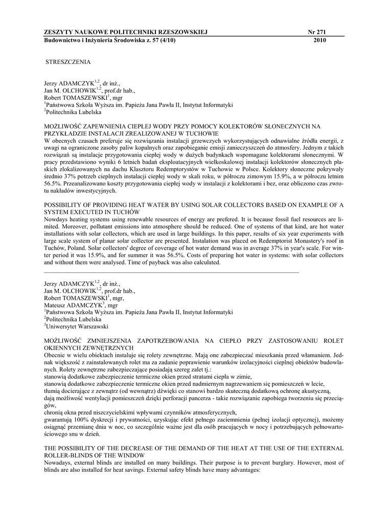 Streszczenia - Oficyna Wydawnicza Politechniki Rzeszowskiej