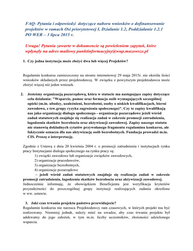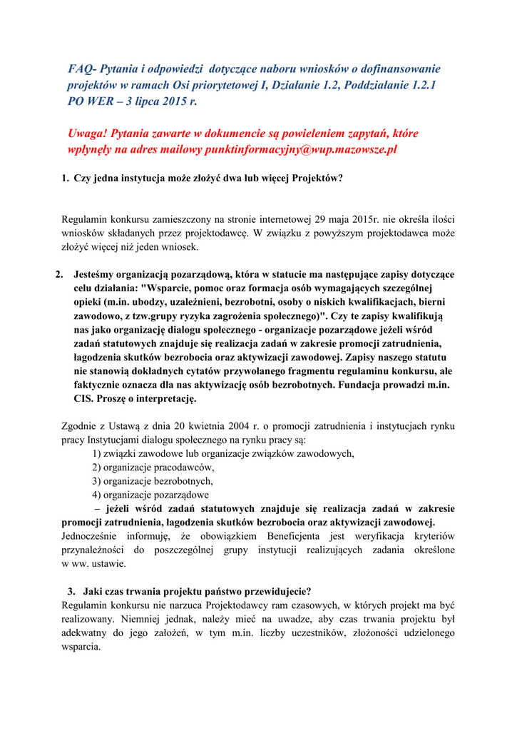 FAQ - Wojewódzki Urząd Pracy w Warszawie