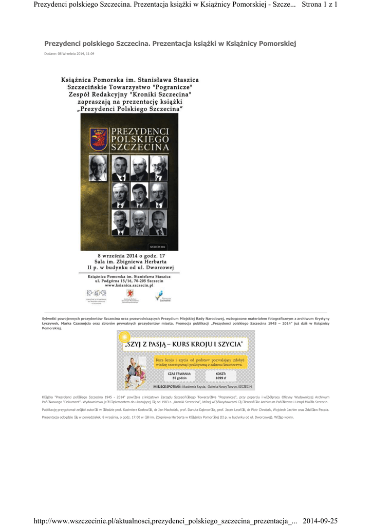 Strona 1 z 1 Prezydenci polskiego Szczecina. Prezentacja książki w