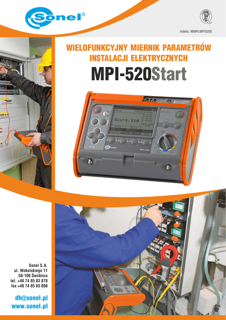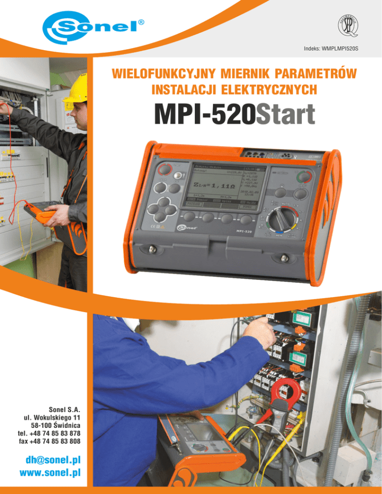 Indeks: WMPLMPI520S WIELOFUNKCYJNY MIERNIK PARAMETRÓW INSTALACJI ELEKTRYCZNYCH MPI-520Start Sonel S.A. ul. Wokulskiego 11 58-100 Świdnica tel. +48 74 85 83 878 fax +48 74 85 83 808 [email protected] www.sonel.pl MPI-520Start Wielofunkcyjny miernik parametrów instalacji elektrycznych · Pomiary impedancji pętli zwarciowej: - pomiar impedancji prądem rzędu 23A (44A przy napięciu międzyfazowym) rezystor zwarciowy Rzw=10Ω, - zakres napięć pomiarowych: 95...440V, częstotliwości 45...65Hz, - pomiar impedancji pętli zwarcia z rozdzielczością do 0,01Ω, w instalacjach zabezpieczonych wyłącznikami RCD o IΔn≥30mA bez ich zadziałania, - automatyczne wyliczanie prądu zwarciowego; rozróżnianie napięcia fazowego i międzyfazowego, - pomiary przy użyciu wtyczki UNI-Schuko z przyciskiem wyzwalającym pomiar (również przy zamienionych przewodach L i N) lub przewodach o długości 1,2m, 5m, 10m, 20m, z ewentualnym wykorzystaniem adapterów gniazd 3-faz. (AGT). ·Badanie wyłączników różnicowoprądowych typu AC, A i B: - zabezpieczenie miernika przed obecnością napięcia na obiekcie i pojawieniem się napięcia w trakcie pomiaru, - samoczynne rozładowywanie pojemności mierzonego obiektu po zakończeniu pomiaru, - automatyczny pomiar wszystkich kombinacji rezystancji w przewodach 3-, 4i 5-żyłowych przy wykorzystaniu dodatkowego adaptera AutoISO-1000C, - akustyczne wyznaczanie pięciosekundowych odcinków czasu ułatwiające zdjęcie charakterystyk czasowych przy pomiarze rezystancji izolacji. ·Niskonapięciowy pomiar rezystancji połączeń ochronnych i wyrównawczych: - pomiar ciągłości przewodu ochronnego prądem ≥200 mA w dwóch kierunkach, - pomiar małym prądem z sygnalizacją akustyczną, - autokalibracja przewodów pomiarowych - możliwość stosowania przewodów dowolnej długości. - pomiar wyłączników zwykłych, krótkozwłocznych i selektywnych o znamionowych prądach różnicowych 10, 30, 100, 300, 500 i 1000mA, ·Pomiary rezystancji uziemienia: - funkcja automatycznego pomiaru pełnego zestawu parametrów wyłącznika (po jednorazowym naciśnięciu przycisku „START” miernik wykonuje cały zadany cykl pomiarów łącznie z możliwością pomiaru impedancji pętli zwarcia L-PE prądem 15mA), - wewnętrzne źródło napięcia o częstotliwości odpowiedniej dla sieci 50/60Hz. - kształt przebiegu wymuszanego prądu upływu wybierany przez użytkownika: sinusoidalny (start od zbocza narastającego lub opadającego), jednokierunkowy pulsujący (dodatni lub ujemny), jednokierunkowy pulsujący z podkładem prądu stałego (dodatni i ujemny), stały (dodatni i ujemny), - pomiar prądu wyzwalania IA prądem narastającym, - pomiar metodą techniczną 3- przewodową z 2 elektrodami pomocniczymi, ·Szybkie sprawdzanie poprawności podłączenia przewodu ochronnego PE za pomocą elektrody dotykowej. ·Pomiar napięcia, częstotliwości oraz - przy użyciu dodatkowych cęgów - prądu przemiennego, cosφ oraz mocy (czynnej, biernej, pozornej). ·Sprawdzanie kolejności faz. ·Pamięć 990 rekordów (57500 pojedynczych wyników), wyjście USB do - pomiar czasu zadziałania tA przy prądach ½IΔn, 1IΔn, 2IΔn i 5IΔn , komputera PC. - pomiar napięcia dotykowego UB i rezystancji przewodu ochronnego RE bez wyzwalania wyłącznika, - wykrywanie zamiany przewodów L i N w gniazdku; nie wpływa na wykonywanie pomiarów, - możliwość pomiaru prądu zadziałania IA oraz rzeczywistego czasu zadziałania tAI przy jednym wyłączeniu RCD, - pomiary dla napięcia 95...270V. ·Pomiary rezystancji izolacji: ·Zasilanie z baterii lub akumulatora (opcja). ·Przyrząd spełnia wymagania normy PN-EN 61557. Czy wiesz że... Miernik MPI-520S jako jeden z nielicznych umożliwia dokładny pomiar impedancji pętli zwarcia, również w obwodach L-PE w sieciach z wyłącznikami RCD (pomiar prądem 15mA) ? - napięcia pomiarowe: 50V, 100V, 250V, 500V i 1000V, - pomiar rezystancji izolacji do 3 GΩ, - możliwość pomiaru w gnieździe za pomocą adaptera UNI-Schuko, Czy wiesz że... Miernik MPI-520S jako jedyny umożliwia automatyczny pomiar rezystancji izolacji przewodów 3-, 4- i 5-żyłowych za pomocą dodatkowego adaptera ? Bezpieczeństwo elektryczne: - rodzaj izolacji podwójna, zgodnie z PN-EN 61010-1 i IEC 61557 - kategoria pomiarowa IV 300V wg PN-EN 61010-1 - stopień ochrony obudowy wg PN-EN 60529 IP54 Pozostałe dane techniczne: - zasilanie miernika baterie alkaliczne LR14 (4 szt.) lub akumulator Ni-MH (opcja) Wyposażenie standardowe miernika MPI-520Start: - adapter WS-03 wyzwalający pomiar z wtykiem UNI-Schuko - przewód 1,2m żółty zakończony wtykami bananowymi - przewód 1,2m niebieski zakończony wtykami bananowymi - przewód 1,2m czerwony zakończony wtykami bananowymi - przewód do transmisji danych USB - sonda ostrzowa czerwona z gniazdem bananowym - sonda ostrzowa niebieska z gniazdem bananowym - krokodylek żółty K02 - krokodylek czerwony K02 - futerał L4 - szelki do miernika - pojemnik na baterie LR14 (rozmiar C) - komplet baterii - program „Sonel Reader” (odczyt danych z pamięci) - certyfikat kalibracji WAADAWS03 WAPRZ1X2YEBB WAPRZ1X2BUBB WAPRZ1X2REBB WAPRZUSB WASONREOGB1 WASONBUOGB1 WAKROYE20K02 WAKRORE20K02 WAFUTL4 WAPOZSZEKPL WAPOJ1 Wyposażenie dodatkowe miernika MPI-520Start: - przewód 5m czerwony zakończony wtykami bananowymi WAPRZ005REBB - przewód 10m czerwony zakończony wtykami bananowymi WAPRZ010REBB - przewód 20m czerwony zakończony wtykami bananowymi WAPRZ020REBB - przewód 15m niebieski na szpuli zakończony wtykami bananowymi WAPRZ015BUBBSZ - przewód 30m czerwony na szpuli zakończony wtykami bananowymi WAPRZ030REBBSZ - przewód do ładowania akumulatorów z gniazda zapalniczki samochodowej (12V) WAPRZLAD12SAM - AGT-16P (adapter gniazd trójfazowych) WAADAAGT16P - AGT-32P (adapter gniazd trójfazowych) WAADAAGT32P - AGT-63P (adapter gniazd trójfazowych) WAADAAGT63P - AGT-16C (adapter gniazd trójfazowych) WAADAAGT16C - AGT