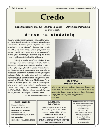 Rok 1, numer 41 XXX NIEDZIELA ZWYKŁA 28 października 2012 r