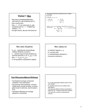 Wykład 7: Moc Moc testu Studenta Moc zaley od