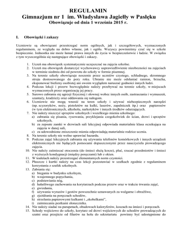 Regulamin szkoły - Gimnazjum nr 1 w Pasłęku