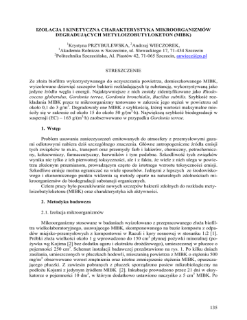 Izolacja i kinetyczna charakterystyka mikroorganizmów
