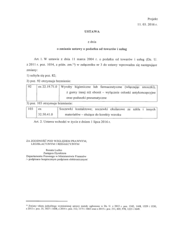 z dnia Projekt 11.03.2016 r. Art. I. W ustawie z dnia 11 marca 2004 r