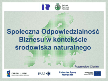Społeczna Odpowiedzialność Biznesu w kontekście środowiska naturalnego Przemysław Cieniek Plan prezentacji 1. CSR drogą do zrównoważonego rozwoju 2. Środowisko naturalne – wspólne dobro i odpowiedzialność 3. Ekologiczne zachowania - bardzo ważny aspekt odpowiedzialności biznesu 4. Proekologiczne działania mogą być opłacalne 5. Przykłady inwestycji w różnych obszarach działalności przedsiębiorstwa oraz komponenty środowiska naturalnego CSR drogą do zrównoważonego rozwoju Społeczna Odpowiedzialność Biznesu została zestandaryzowana w normie ISO 26000 Obszary tematyczne CSR, opisane w normie ISO 26000 to: • • • • • • • • Ład organizacyjny Prawa człowieka Praktyki/aspekty pracownicze Środowisko naturalne Uczciwe praktyki rynkowe Zagadnienia konsumenckie Zaangażowanie i rozwój społeczności lokalnej Odpowiedzialność administracji publicznej CSR i Środowisko naturalne Obszar dotyczący środowiska naturalnego obejmuje, w rozumieniu normy ISO 26000 i wedle bieżących standardów zrównoważonego rozwoju, bardzo szerokie spektrum zagadnień. Odnosi się zarówno do etapu: – – – – projektowania (decyzje dotyczące wyboru surowców), pakowania, dystrybucji, utylizacji odpadów, niezależnie od lokalizacji danego procesu. Środowisko naturalne Firma powinna brać odpowiedzialność za wpływ na środowisko na wszystkich etapach łańcucha produkcji i dostaw. promować proekologiczną postawę wśród interesariuszy, w tym dostawców, konsumentów i wszystkich zaangażowanych w ramach cyklu życia produktu Ekologiczne zachowania - bardzo ważny aspekt odpowiedzialności biznesu Działania firmy zawsze wpływają na środowisko naturalne, niezależnie od liczby zatrudnionych, lokalizacji czy charakteru działania. Odpowiedzialność za środowisko stała się koniecznością i obowiązkiem. Mikro i małe przedsiębiorstwa, ze względu na ich ilość mają kolosalny wpływ na środowisko naturalne. W bardzo przystępny sposób przedsiębiorstwa te mogą wdrażać pewne ekologiczne praktyki Elementy składowe ekologicznie odpowiedzialnych przedsiębiorstw Praktycznie każdy obszar działalności przedsiębiorstwa można optymalizować ekologicznie. Kilka głównych obszarów, na które przedsiębiorstwo ma wpływ to: • • • • • • Ekobiuro Ekobudownictwo Ekologiczny Transport Edukacja Ekologiczna Bioróżnorodność Ekoefektywność Proekologiczne działania mogą być opłacalne Ekologiczne wdrożenia mogą znacznie zwiększyć konkurencyjność przedsiębiorstwa niezależnie od branży do której należy Dbałość o środowisko może być sposobem na wykreowanie nowych produktów i usług skierowanych dla świadomych ekologicznie konsumentów, których z roku na rok przybywa Wdrożenie praktycznych rozwiązań (inwestycyjnych i nie inwestycyjnych), może nie tylko ograniczyć negatywny wpływ na środowisko, ale także zmniejszyć koszty działalności Efektywne metody wdrażania usprawnień w przedsiębiorstwie - Filozofia Kaizen Kaizen, poprzez stopniowe doskonalenie wszelkich aspektów działalności firmy, dąży do ulepszania i zmiany na lepsze poprzez: – redukcję kosztów – skrócenie czasu realizacji procesu pracy oraz poprawy jakości; – dostosowywania technicznego elementów systemu; – tworzenia kryteriów oceny i nagradzania Efektywne metody wdrażania usprawnień w przedsiębiorstwie - Filozofia Kaizen 10 zasad kaizen • Problemy stwarzają możliwości. • Pytaj 5 razy „Dlaczego?” (Metoda 5 why) • Bierz pomysły od wszystkich. • Myśl nad rozwiązaniami możliwymi do wdrożenia. • Odrzucaj ustalony stan rzeczy. • Wymówki, że czegoś się nie da zrobić, są zbędne. • Wybieraj proste rozwiązania, nie czekając na te idealne. • Użyj sprytu zamiast pieniędzy. • Pomyłki koryguj na bieżąco. • Ulepszanie nie ma końca. Ekobiuro Firmy z różnych branż wprowadzają ekologiczne zasady do swoich siedzib, dostrzegając znaczenie bycia „zielonym biurem”. Tworzenie ekobiur wymaga minimalnych nakładów finansowych, daje natomiast znaczne oszczędności finansowe firmie, sprzyja również integracji pracowników i ich zaangażowaniu w życie firmy. Ekobiuro (case study) Firma 3 Wings promuje podpisywanie porozumień o dostarczaniu faktur drogą elektroniczną ze wszystkimi klientami i dostawcami oraz redukuje wysyłanie papierowej korespondencji do minimum. Ekobiuro (case study) AEGIS MEDIA zmieniła siedzibę na bardziej ekologiczną, co z kolei zmotywowało firmę do wzmożenia działań proekologicznych i postawienia sobie dodatkowych celów do osiągnięcia, m.in.: • sortowania odpadów i promocji recyclingu, • oszczędzania energii, • sprawdzenia możliwości wprowadzenia czujników na światło w siedzibie firmy • zmniejszenia śladu klimatycznego (carbon footprint) przez redukcję liczby podróży biznesowych, a także wprowadzenia dodatkowych urządzeń do wideokonferencji. Ekobiuro (case study) Firma doradczo-szkoleniowa PROFES od 6 lat wdraża i rozwija system ciągłego doskonalenia bazujący na japońskiej filozofii KAIZEN, polegającej na konsekwentnej eliminacji marnotrawstwa. W firmie zastosowano szereg proekologicznych rozwiązań: • dwustronne drukowanie materiałów szkoleniowych na papierze pochodzącym w 100 procentach z makulatury • oraz zastosowanie ekologicznych, lekkich okładek do materiałów szkoleniowych • wdrożono program do spotkań wirtualnych (Netviewer), który ograniczył liczbę wyjazdów do klienta, • zakupiono stojaki na rowery, zachęcając pracowników do przyjazdu rowerem do pracy. • nawiązano współpracę z ekologiczną, mobilną myjnią dla samochodów służbowych. Auta myte są na parkingu firmy przy pomocy sprężonej pary. Myjnia zużywa 4 l wody zamiast 100 l na umycie jednego samochodu. Ekobudownictwo Polega na tworzeniu zielonych budynków biurowych i ograniczenie wpływu nieruchomości na środowisko naturalne