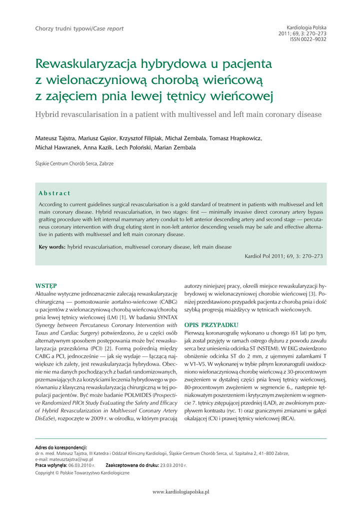 Rewaskularyzacja hybrydowa u pacjenta z wielonaczyniową