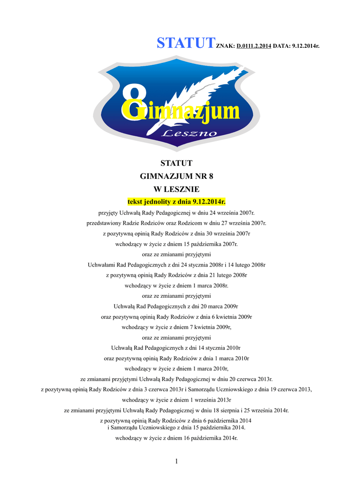 STATUT GIMNAZJUM NR 8 W LESZNIE