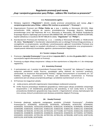 2. Aktualny Regulamin dostępny jest na stronie internetowej pod adresem: philips.pl/promocjazelazka