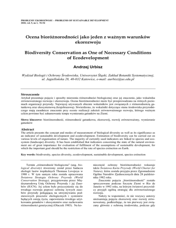 Andrzej Urbisz Ocena bioróżnorodności jako