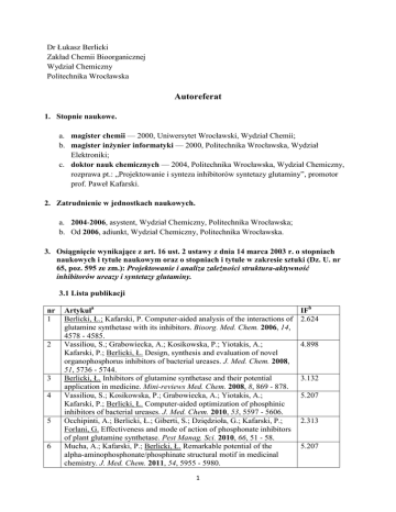 Autoreferat - WCh PWR - Politechnika Wrocławska