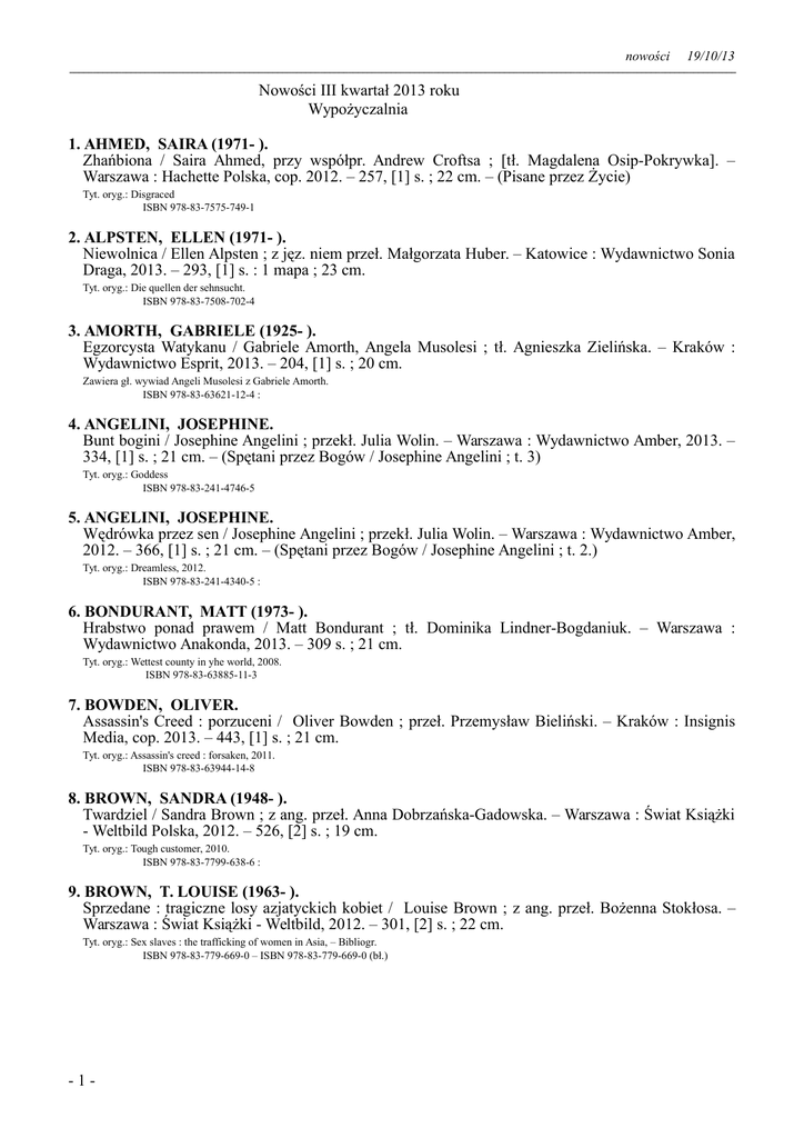 Nowości III kwartał 2013 roku Wypożyczalnia 1. AHMED, SAIRA