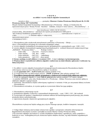 U M O W A na odbiór i wywóz stałych odpadów komunalnych