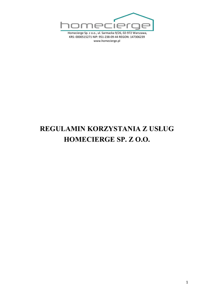 REGULAMIN KORZYSTANIA Z USŁUG HOMECIERGE SP. Z O.O.