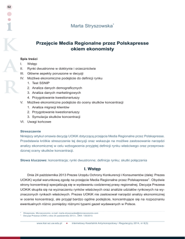 Marta Stryszowska* Przejęcie Media Regionalne przez