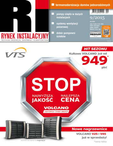 termomodernizacja domów jednorodzinnych pompy ciepła w dużych instalacjach systemy wentylacji pożarowej dobór pompowni ścieków 9/2015 rok XXIII Cena 15,50 zł (5% VAT) ISSN 1230-9540 SKANUJ KOD APLIKACJĄ Indeks 344079 I ZOBACZ WIĘCEJ! Nakład 10 tys. egz. GRUPA WWW.RYNEKINSTALACYJNY.PL REKLAMA ENERGIA ultra cichy: 16 dB(A)* sterowanie przez WiFi Nowa forma w zgodzie z naturą Klimatyzatory ścienne serii RAC 2015 zostały zaprojektowane w oparciu o wnikliwe symulacje i badania aerodynamiczne. Ich celem było stworzenie energooszczędnej jednostki wewnętrznej o znikomych stratach przepływu powietrza, która zapewni komfortowe chłodzenie i ogrzewanie pomieszczeń przy jednoczesnej redukcji głośności do zaledwie 16 dB(A). Tak oto powstał nowy standard wzornictwa w klimatyzacji pomieszczeń - TRIANGLE DESIGN. Poznaj nowe modele urządzeń klimatyzacyjnych Samsung serii CLASSIC, PREMIUM i PRESTIGE. czerwiec 2013 2*dotyczy modeli PREMIUM i PRESTIGE AR09HSSFAWK produkt klasy energetycznej A+++ www.klimatyzacja.samsung.pl facebook.com/SamsungPolska rynekinstalacyjny.pl Nagrzewnica wodna LEO FB V z konsolą w cenie urządzenia 995,- + VAT NOWE STEROWANIE! TS 3-stopniowy regulator obrotów z termostatem 94,- Więcej szczegółów na str. 15 www.flowair.com/basic + VAT Agata – koordynator sprzedaży FLOWAIR Polska Centralno-Wschodnia Buntuj się z nami przeciwko wysokim cenom! MIESIĘCZNIK INFORMACYJNO-TECHNICZNY ISSN 1230-9540, nakład 10 000 GRUPA Wydawca Grupa MEDIUM www.medium.media.pl Adres redakcji 04-112 Warszawa, ul. Karczewska 18 tel./faks 22 512 60 75 do 77 e-mail: [email protected] www.rynekinstalacyjny.pl Redaktor naczelny Waldemar Joniec, tel. 502 042 518 [email protected] Sekretarz redakcji Agnieszka Orysiak, tel. 600 050 378 [email protected] Redaktor portalu internetowego Katarzyna Rybka [email protected] Redakcja Jerzy Kosieradzki (red. tematyczny), Joanna Korpysz-Drzazga (red. językowy), Agata Kendziorek-Skolimowska (red. statystyczny), Jacek Sawicki (red. tematyczny), Bogusława Wiewiórowska‑Paradowska (red. tematyczny) Reklama i marketing tel./faks 22 810 28 14, 512 60 70 Dyrektor biura reklamy i marketingu Joanna Grabek, [email protected] Specjalista ds. reklamy w RI Ewa Zgutka, [email protected] Dyrektor ds. marketingu i sprzedaży Michał Grodzki, [email protected] Kierownik ds. promocji Marta Lesner-Wirkus, [email protected] Kolportaż i prenumerata tel./faks 22 512 60 74, 810 21 24 Specjalista ds. prenumeraty Jerzy Lachowski, [email protected] Prenumerata realizowana przez RUCH S.A. Zamówienia na prenumeratę w wersji papierowej i na e-wydania można składać bezpośrednio na stronie www.prenumerata.ruch.com.pl. Ewentualne pytania prosimy kierować na adres e-mail: [email protected] lub kontaktując się z Telefonicznym Biurem Obsługi Klienta pod numerem: 801 800 803 lub 22 717 59 59 – czynne w godzinach 7.00 – 18.00. Koszt połączenia wg taryfy operatora. Administracja Danuta Ciecierska (HR), Maria Królak (księgowość) Skład, łamanie [email protected] Druk Zakłady Graficzne TAURUS Redakcja zastrzega sobie prawo do adiustacji tekstów i nie zwraca materiałów niezamówionych. Redakcja nie ponosi odpowiedzialności za treść reklam i ogłoszeń, ma też prawo odmówić publikacji bez podania przyczyn. Wszelkie prawa zastrzeżone © by Grupa MEDIUM. Rozpowszechnianie opublikowanych materiałów bez zgody wydawcy jest zabronione. Wersja pierwotna czasopisma – papierowa. Za publikację w „Rynku Instalacyjnym” MNiSW przyznaje jednostkom naukowym 5 punktów Wskazówki dla autorów, procedura recenzowania i lista recenzentów artykułów na www.rynekinstalacyjny.pl/redakcja Grupa MEDIUM jest członkiem Izby Wydawców Prasy R ośnie liczba pozwoleń na budowę oraz budów rozpoczętych i oddawanych, a co najważniejsze: są też na nie klienci. Jednak jakość budynków i mieszkań, zwłaszcza jakość energetyczna, nie jest ujmowana w statystykach. Z danych Stowarzyszenia Producentów i Importerów Urządzeń Grzewczych (SPIUG) wynika, że coraz lepiej sprzedają się nowoczesne systemy i urządzenia – w tym kotły kondensacyjne, pompy ciepła i systemy płaszczyznowego ogrzewania niskotemperaturowego. Od 26 września br. dyrektywa ErP wprowadza nowe wymagania dotyczące efektywności energetycznej dla źródeł ciepła i zasobników c.w.u. oraz nakłada obowiązki na producentów, dystrybutorów i instalatorów. Wiele firm już od wiosny prowadzi szkolenia dla instalatorów, na których omawiane są nowe regulacje prawne i zmiany w ofercie. Minimalne wymagania dla wprowadzanych do obrotu kotłów gazowych i olejowych będą mogły spełnić urządzenia kondensacyjne. Zwykłe kotły gazowe i olejowe będą sprzedawane tylko do wyczerpania się zapasów. Wszystkie źródła ciepła o mocy do 70 kW i zasobniki do 500 l będą musiały mieć etykietę efektywności energetycznej, tak jak obecnie urządzenia AGD. Początkowo funkcjonować będą klasy od A++ do G, za cztery lata dojdzie klasa A+++, a znikną trzy najniższe: E, F i G. Zestawy urządzeń także będą musiały mieć etykietę – jeśli zestaw zostanie zdefiniowany przez producenta, ten ją wystawi, a jeśli skompletuje go instalator, będzie musiał przygotować etykietę sam, z ewentualną pomocą producenta. Niemcy zamierzają pójść jeszcze dalej – od przyszłego roku chcą wprowadzić etykiety energetyczne dla zamontowanych już urządzeń grzewczych, starszych niż 15 lat. Tym samym etykiety trzeba zrobić dla ok. 13 mln kotłów, głównie olejowych i gazowych. Klasy energetyczne byłyby w pełni zgodne z europejskimi etykietami i wystawialiby je kominiarze. Niemcy szacują, że ponad 70% kotłów uzyska niskie klasy C, D i E (żółte i czerwone), co powinno skłaniać do ich wymiany. Posunięcie to jest częścią niemieckiego krajowego planu działań na rzecz racjonalizacji zużycia energii. Nasi zachodni sąsiedzi sprawdzają też, czy możliwe i opłacalne 
