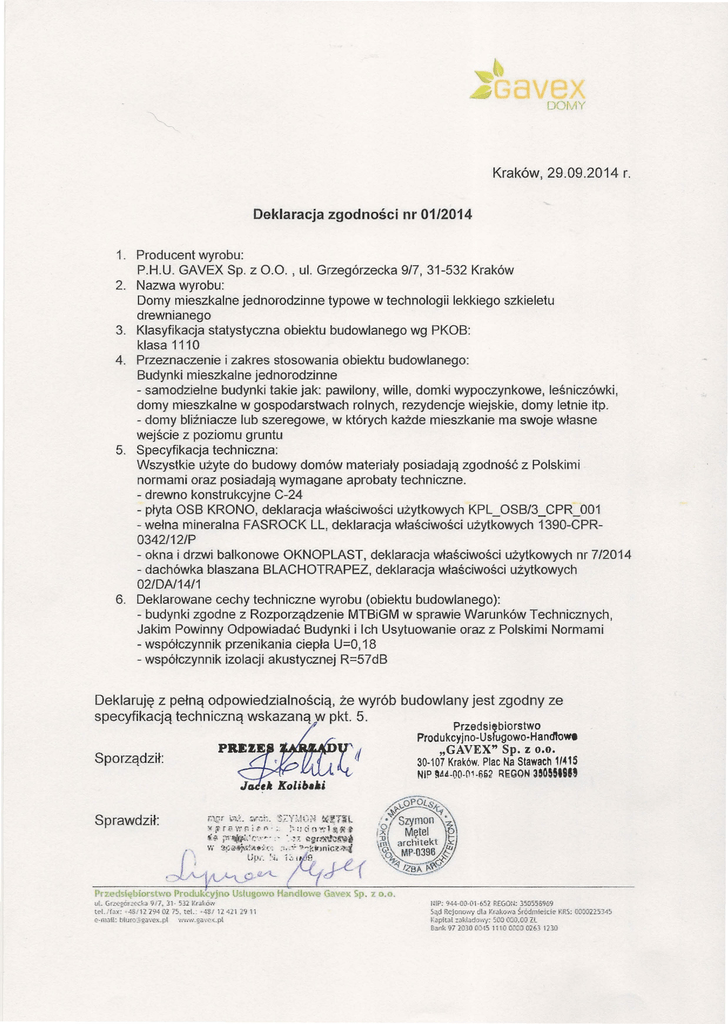 Kraków, 29.09.2014 r. Deklaracja zgodności nr 01