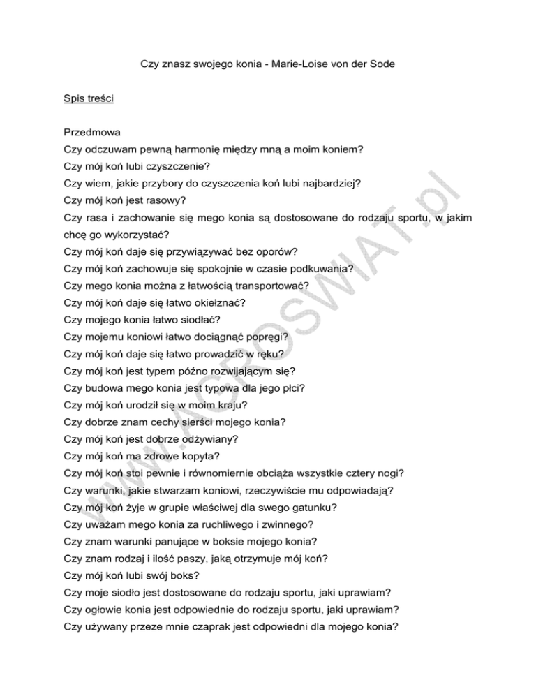 Czy znasz swojego konia - Marie-Loise von der Sode Spis treści