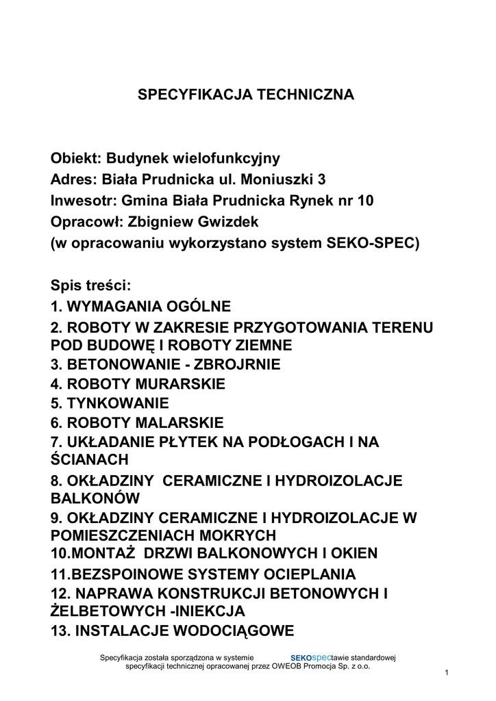 (w opracowaniu wykorzystano system SEKO-SPEC)