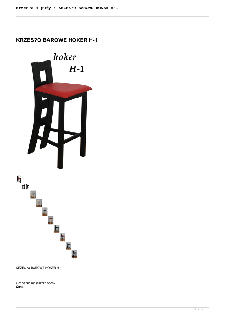 Krzes?a i pufy : KRZES?O BAROWE HOKER H-1 KRZES?O BAROWE HOKER H-1 KRZES?O BAROWE HOKER H-1 Ocena Nie ma jeszcze oceny Cena 1 / 2 Krzes?a i pufy : KRZES?O BAROWE HOKER H-1 Ró?nica ceny dla wariantu Cena podstawowa brutto: 185,00 z? Cena brutto: 181,30 z? Kwota rabatu: -3,70 z? Zadaj pytanie o produkt Materia?y: ada-meble Szczegó?y produktu Krzes?o barowe HOKER H-1 wykonane z drewna bukowego wysokogatunkowej bejcy i lakieru oraz zaawansowanej technologicznie ekoskóry, mi?kkiej w dotyku imitacji skóry naturalnej, oddychaj?cej, wodoodpornej, ?atwej w utrzymaniu. Obicie krzes?a elegancko przeszywane. Istnieje mo?liwo?? wyboru koloru ekoskóry. Wymiary krzes?a: wysoko?? krzes?a 95 cm; szeroko?? siedziska krzes?a 45 cm; g??boko?? siedziska krzes?a 46 cm; wysoko?? siedziska krzes?a 74 cm. * Bia?e drewno za dop?at?. Recenzje Nikt jeszcze nie ocenia? tego produktu. 2 / 2 Powered by TCPDF (www.tcpdf.org)