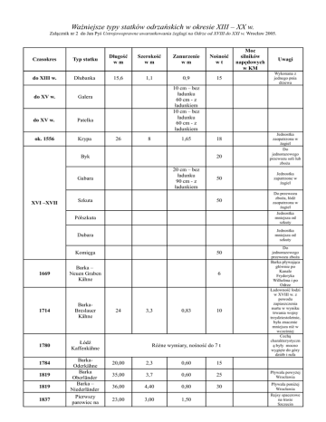 Ważniejsze typy statków odrzańskich w okresie XIII – XX w.