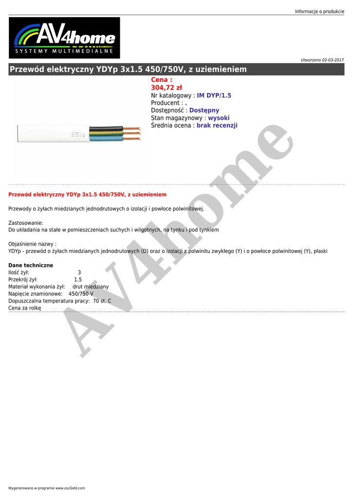 Przewód elektryczny YDYp 3x1.5 450/750V, z