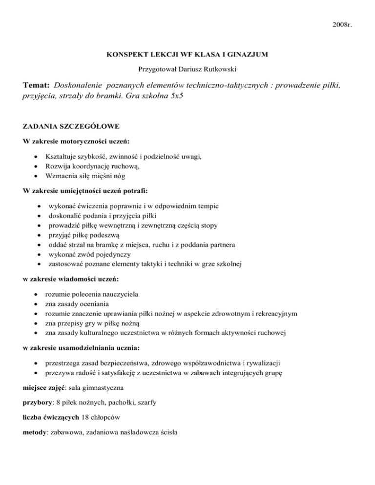 Konspekt lekcji wf: Doskonalenie poznanych elementów techniczno