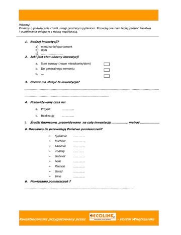 Kwestionariusz przygotowany przez - Portal Wnętrzarski