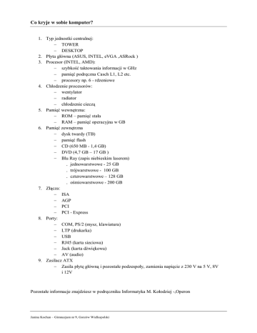 Co kryje w sobie komputer? - Gimnazjum nr 9