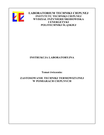 LABORATORIUM TECHNIKI CIEPLNEJ INSTYTUTU TECHNIKI CIEPLNEJ WYDZIAŁ INŻYNIERII ŚRODOWISKA I ENERGETYKI POLITECHNIKI ŚLĄSKIEJ INSTRUKCJA LABORATORYJNA Temat ćwiczenia: ZASTOSOWANIE TECHNIKI TERMOWIZYJNEJ W POMIARACH CIEPLNYCH 1. WPROWADZENIE TEORETYCZNE Stosowane powszechnie metody pomiaru temperatury umożliwiają jej określenie w punkcie zainstalowania czujnika pomiarowego. Poprzez termowizyjny pomiar temperatury można określić jej rozkład na całej powierzchni badanego obiektu. Umożliwiają to kamery termowizyjne, które stają się coraz powszechniejszym narzędziem lokalizacji miejsc występowania oraz ilościowej oceny strat ciepła lub wykrywania nieprawidłowości w funkcjonowaniu różnorodnych urządzeń i instalacji energetycznych. W wyniku pomiaru otrzymywany jest tzw. termogram, czyli obraz na którym w wybranej palecie barw lub w odcieniach szarości odwzorowane jest pole temperatury. Wyniki termowizyjnych pomiarów temperatury są przydatne w badaniach różnych procesów cieplnych oraz przy ocenie stanu technicznego czy parametrów cieplnych urządzeń i instalacji energetycznych oraz innych obiektów. Pomiary termowizyjne polegają na pomiarze natężenia promieniowania cieplnego, które jest emitowane przez wszystkie ciała o temperaturze wyższej od temperatury 0 K (-273,15oC). 1.1. Rozwój techniki termowizyjnych pomiarów temperatury Pierwsze detektory w kamerach termowizyjnych wymagały schłodzenia ich podczas pracy do temperatury około minus 200oC. Realizowano to poprzez napełnienie odpowiedniego pojemnika w kamerze ciekłym azotem, który powoli parując utrzymywał detektor w niskiej temperaturze. Kolejnym krokiem, który uczynił kamery termowizyjne mniej uciążliwe w użyciu, było zastosowanie do chłodzenia detektorów mikroziębiarek sprężarkowych w których czynnikiem roboczym był hel. Ziębiarki te umożliwiały również osiągnięcie temperatury około –200 oC. Ciągłe prace nad doskonaleniem technik termograficznego pomiaru temperatury doprowadziły do skonstruowania nowych typów detektorów pracujących zadowalająco już w temperaturze minus 70oC. Do chłodzenia tego typu detektora wystarczające było zastosowanie chłodziarek termoelektrycznych wykorzystujących efekt Peltiera. Dalsze prace doprowadziły do opracowania konstrukcji współczesnych detektorów działających zadowalająco w temperaturze 30 oC. Równocześnie z doskonaleniem strony elektronicznej detektorów promieniowania zmieniała się zasada generacji obrazu termowizyjnego. Do niedawna dwuwymiarowy obraz termograficzny tworzono za pomocą precyzyjnego mechanicznego układu skanującego w którym obrót wielościanu z lustrzanymi ściankami bocznymi zsynchronizowany był z jego wahadłowym ruchem w drugiej płaszczyźnie. W efekcie, w sposób sekwencyjny, przeszukiwane było całe pole badane kamerą. Strumienie energii radiacyjnej pochodzące z kolejnych wycinków badanej powierzchni po przejściu przez soczewkę padały na jedną z lustrzanych ścianek obracającego się wielościanu. Po odbiciu się od układu ruchomych luster padały następnie na punktowy detektor gdzie były przetwarzane na sygnał elektryczny o wielkości stosownej do natężenia padającego promieniowania. Konstrukcja układu zapewniała zbadanie z dużą częstotliwością punkt po punkcie i linia po linii całego obiektu widzianego w obiektywie. Stosowane były też układy skanujące gdzie zamiast zwierciadeł używano obracających się wielościanów wykonanych z materiału przepuszczającego promieniowanie podczerwone. Innym rozwiązaniem były układy z detektorami liniowymi, gdzie w celu utworzenia dwuwymiarowego obrazu przeszukiwanie odbywało się tylko w jednym kierunku, linia po linii. Ciągłe doskonalenie detektorów doprowadziło do opracowania konstrukcji współczesnego detektora promieniowania podczerwonego w postaci dwuwymiarowej stałej Kruczek T.: Zastosowanie techniki termowizyjnej w pomiarach cieplnych, 3.11.2006 2 matrycy. Typowa matryca składa się z 240 x 320 pojedynczych mikrodetektorów. Obraz badanego obiektu padając przez obiektyw na matrycę powoduje wygenerowanie w każdym pojedynczym mikrodetektorze sygnału elektrycznego stosownego do natężenia padającego promieniowania. Sygnały te zbierane są z dużą częstotliwością przez układ odczytu i po obróbce elektronicznej służą do utworzenia obrazu termograficznego badanej powierzchni. Ciągły rozwój technologii wytwarzania detektorów umożliwiał stopniowe rozszerzanie zakresu pomiarowego urządzeń termowizyjnych. Rozszerzanie odbywało się zarówno w kierunku wysokich jak również niskich temperatur. Można się o tym przekonać analizując parametry techniczne kolejnych wersji kamer termowizyjnych [5]. Współczesne rozwiązania umożliwiają prowadzenie pomiarów za pomocą jednego urządzenia w zakresie temperatury –40oC÷2000 oC. Przy wysokich temperaturach stosowane są filtry optyczne ograniczające intensywność promieniowania przechodzącego przez układ optyczny i padającego na detektor. Równocześnie z rozszerzaniem zakresu pomiarowego temperatury poprawiana była czułość termiczna urządzeń termowizyjnych. Przy temperaturze 30 oC czułość termiczna współczesnych kamer termowizyjnych o ogólnym przeznaczeniu jest na poziomie 0,08÷0,1K, natomiast kamery przeznaczone do badań naukowych osiągają poziom czułości równy 0,02K [5, 7]. Parametr ten informuje o tym jaką minimalną różnicę temperatury jest w stanie wykryć detektor kamery. 1.2. Zakresy spektralne kamer termowizyjnych Ciała stałe i ciekłe dają ciągłe widmo promieniowania cieplnego, natomiast gazy promieniują (i absorbują promieniowanie cieplne) selektywnie. Pochłanianie promieniowania wychodzącego z badanej powierzchni oraz przechodzącego przez warstwę powietrza (gazu) znajdującą się między badanym obiektem i obiektywem kamery może mieć wyraźny wpływ na wynik pomiaru. Głównymi 