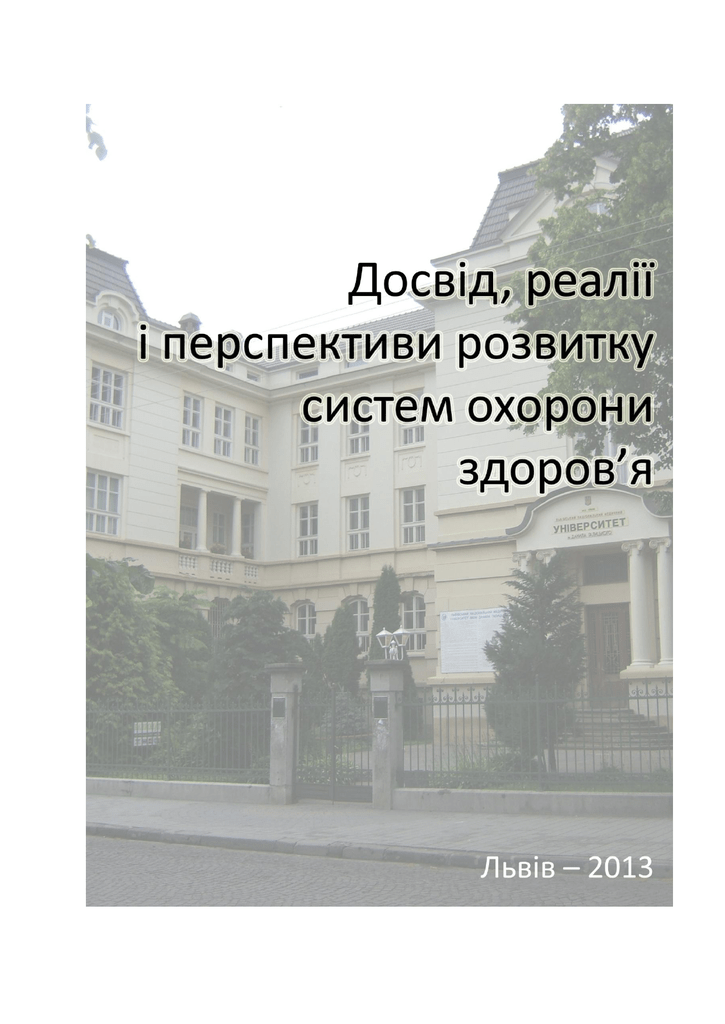 Львів – 2013 УДК 614.2 ББК 51.1 Д-70 Досвід, реаліїї і перспективи розвитку систем охорони здоров’ѐ. – Львів: Видавництво ЛОБФ «Медицина і право», 2013. – с. 585. В монографії представлені результати досліджень спеціалістів з соціальної медицини, громадського здоров’ѐ та організаторів охорони здоров’ѐ з таких основних питань: охорона здоров’ѐ – польсько-українська співпрацѐ; міжнародна проблематика; ювропейські фонди в розвитку систем охорони здоров’ѐ; системи охорони здоров’ѐ – одиниці медпослуг; санітарний наглѐд; ѐкість медпослуг; фінансуваннѐ – розвиток медичного страхуваннѐ; інформатизаціѐ системи охорони здоров’ѐ (e-здоров’ѐ); фармринок; громадське здоров’ѐ – оздоровча профілактика; стилі життѐ; епідеміологіѐ найчастіших медичних проблем; трансплантологіѐ. Виданнѐ призначене длѐ фахівців системи охорни здоров’ѐ, науковців і педагогічних працівників, слухачів і студентів, також широкого загалу читачів. ISBN 978-966-2019-22-3 З великою радістю ми віддаємо до рук читачів, напевно першу таку монографію. Її видання є результатом тісної співпраці Польського Товариства соціальної медицини і громадського здоров’я з Кафедрою організації і управління охороною здоров'я Львівського національного медичного університету імені Данила Галицького. У монографії представлені роботи українських і польських авторів, присвячені важливим суспільним темам громадського здоров'я в обох країнах. Це є результати наукових досліджень, проведених авторськими колективами, роботи лікарів загальної практики, а також матеріали, що містять пропозиції шляхів змін (реформування) в системах охорони здоров’я. Ми маємо надію, що дане видання буде цікавим для читачів публічно або професійно зацікавлених вдосконаленням систем охорони здоров’я в Польщі і в Україні. Ми віримо, що завдяки своїм особливостям дане видання створює площину зближення між нашими суспільствами і буде служити поглибленню нашої співпраці. проф., д.мед.н. Олег Любінець завідувач кафедри організації і управління охороною здоров’я Львівського національного медичного університету імені Данила Галицького проф., д.мед.н. Альфред Овоц Президент правління Польського Товариства соціальної медицини та громадського здоров'я Z dużą radością oddajemy do rąk czytelników, zapewne pierwszą taką monografię. Wydawnictwo jest efektem bliskiej współpracy Polskiego Towarzystwa Medycyny Społecznej i Zdrowia Publicznego z Katedrą Organizacji i Zarządzania Ochroną Zdrowia Paostwowego Uniwersytetu Medycznego im. D. Halickiego we Lwowie. W książce są treści polskich i ukraioskich autorów dotyczące obecnie ważnych społecznie wątków zdrowia publicznego w obu krajach. Są to rozdziały związane z przeprowadzonymi przez zespoły autorskie badaniami naukowymi, prace poglądowe związane z rzeczywistością, jak i propozycje kierunków zmian w systemach opieki zdrowotnej. Mamy nadzieję, że wydawnictwo będzie stanowid ciekawą, inspiracyjną rolę dla czytelników publicznie lub zawodowo zainteresowanych doskonaleniem systemów opieki zdrowotnej w Polsce i na Ukrainie. Wierzymy, iż przez swój charakter wydawnictwo tworzy płaszczyznę zbliżenia między naszymi społeczeostwami i służyd będzie pogłębianiu naszej współpracy. prof. dr hab. Alfred Owoc Prezes Zarządu Polskiego Towarzystwa Medycyny Społecznej i Zdrowia Publicznego prof. dr hab. Oleh Lyubinets Kierownik Katedry Organizacji i Zarządzania Ochrony Zdrowia Paostwowego Uniwersytetu Medycznego im. D. Halickiego we Lwowie Зміст Розділ I ...............................................................................................................................................................8 Europeizacja a polityka zdrowotna ...............................................................................................................9 Нова ювропейська політика в охороні здоров’ѐ «Здоров’ѐ – 2020»: регіональний та національний контекст ............................................................................................................................................17 Działania ref