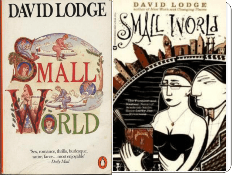 David Lodge (ur. 28 stycznia 1935 w Londynie) – brytyjski pisarz i literaturoznawca, krytyk Lodge był wykładowcą akademickim literatury angielskiej na Uniwersytecie w Birmingham w latach 19601987. Obecnie – zawodowo zajmuje się krytyką literacką, pisaniem powieści, scenariuszy seriali TV i sztuk teatralnych 2-krotnie nominowany do nagrody Booker Price (podobnej do polskiej Nagrody Literackiej NIKE) w 1984 i w 1988 Jego powieści często satyrycznie przedstawiają środowisko uniwersyteckie, zagadnienia z pracy i życia wykładowców/ profesorów nauk humanistycznych. Najbardziej znane to: Changing Places: A Tale of Two Campuses (1975) / Zamiana , Small World: An Academic Romance (1984) / Mały światek, and Nice Work (1988) / Fajna robota = razem publikowane jako: Campus Trilogy Inny częsty temat satyryzowany w powieściach Lodge’a to katolicyzm i paradoksy życia, wymagania stawiane katolikowi i rodzinie katolickiej Najlepiej znany przykład: The British Museum Is Falling Down (1965)= British Museum w posadach drży intertekstualność Bohaterem powieści Lodge’s jest tekst i książka, jej czytanie i odbieranie, pisanie, przenikanie się świata fikcji rzeczywistości (co było 1-wsze?, czy życie jest nudne bo fikcja „zużywa” całą sensacyjność i nic nie zostaje na codzienność?) buduje świat fikcyjny poprzez aluzje do innych kanonicznych utworów literatury brytyjskiej (lub europejskiej) zabawa intertekstualna- pastisz, parodie, „pożyczki”, nawiązania do innych tekstów i rodzajów literackich (Kafka, teatr absurdu i Beckett, romans średniowieczny i legendy o Królu Arturze, poezja renesansowa czy staro-angielska) Mały światek (1984, Small World) Akcja książki rozgrywa się w1979 i rozpoczyna się podczas konferencji naukowej na małym prowincjonalnym uniwersytecie w Rummidge, WB. 2-ga część trylogii- „kontynuacja” Zamiany = której bohaterowie, Morris Zapp i Philip Swallow, profesorowie anglistyki, spotykają się ponownie po 10 latach z okazji tej konferencji satyra na groteskowy często świat współczesnych "odrzutowych profesorów", przemieszczających się z konferencji na konferencję w różnych częściach swiata Tytuł nawiązuje do „małego światka” akademickiego profesorów z USA i WB pokazuje „kisielek” intelektualistówliteraturoznawców, których świat krąży wokół zjazdów, seminariów, sesji po całym świecie, jak również jest to nasz świat, kt. się skurczył dzięki samolotom i innej technologii komunikacyjnej postacie są zaplatani w różne układy i konfiguracje , intrygi i podchody mające służyć zdobyciu intratnej posady w UNESCO, jak równie znalezieniu (prawdziwej) miłości Persse McGarrigle i Angelica Pabst Persse McGarrigle- świeżo upieczony magister literatury, kt właśnie rozpoczął pracę na fikcyjnym uniwersytecie w Limerik (Irlandia) po raz pierwszy uczestniczy w konferencji akademickiej Angelica Pabst- kolejna uczestniczka konferencji-doktorantka z USA, której uroda powoduje, że McGarrigle natychmiast się zakochuje Angelica-została zaadoptowana przez menadżera z KLM (airlines) po tym jak ją znaleziono jako niemowlę w toalecie samolotu Angelica- opuszcza konferencję nie podawszy Persse adresu lub innych danych kontaktowych Główny wątek akcji powieści dalej – to poszukiwanie Angelici przez Persse dokoła świata, biorąc udział w różnych konferencjach: Turcja, Hawaii, Tokyo, Hong Kong, Jerusalem, Nowy York Cheryl Summerbee i Persse McGarrigle Cheryl Summerbee- dokonuje odprawy pasażerów British Airways na lotnisku Heathrow (Londyn), lubi czytać romanse, jej hobby to „czytanie” charakterów pasażerów i przydzielanie miejscówek na tej podstawie – w ten sposób poznaje Persse i się w nim zakochuje Cheryl poznaje Angelicę (kt leci British Airways), pod jej wpływem zaczyna czytać współczesną krytykę literacką i średniowieczny romans rycerski Będąc na konferencji w N. Y, Presse spotyka w końcu Angelicę, ale po jej wykładzie w hotelu przez pomyłkę wyznaje miłość Lily-bliźniaczce Angelici; Lily uświadamia Persse , że był zakochanym w marzeniu/ wyobrażeniu Persse zdaje sobie sprawę że to Cheryl jest kobietą dla niego i leci do Heathrow , gdzie dowiaduje się uprzedniego dnia Cheryl została zwolniona z pracy, i wyruszyła w podróż chcąc zwiedzić świat Powieść kończy się postanowieniem Persse a, że poszuka Cheryl w tym małym wielkim świecie Analiza tekstu Poszukiwania Angelici przez Persse są wpisane w schemat średniowiecznego romansu rycerskiego- Persse, niczym błędny rycerz lub arturiański rycerz Okrągłego Stołu- Sir Perceval w poszukiwaniu Świętego Grala, przemierza lądy i oceany poszukując ideał/ wyobrażenie swojej miłości Również inni bohaterowie, oczytani literacko i świadomi konwencji, przyznają że zawiedli w roli lub próbowali przybrać rolę bohatera-rycerza romansu, a Gral we współczesnym świecie to różne „idealne” pragnienia: miłość, awans, dobrze płatna praca