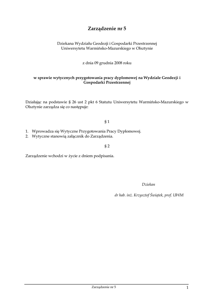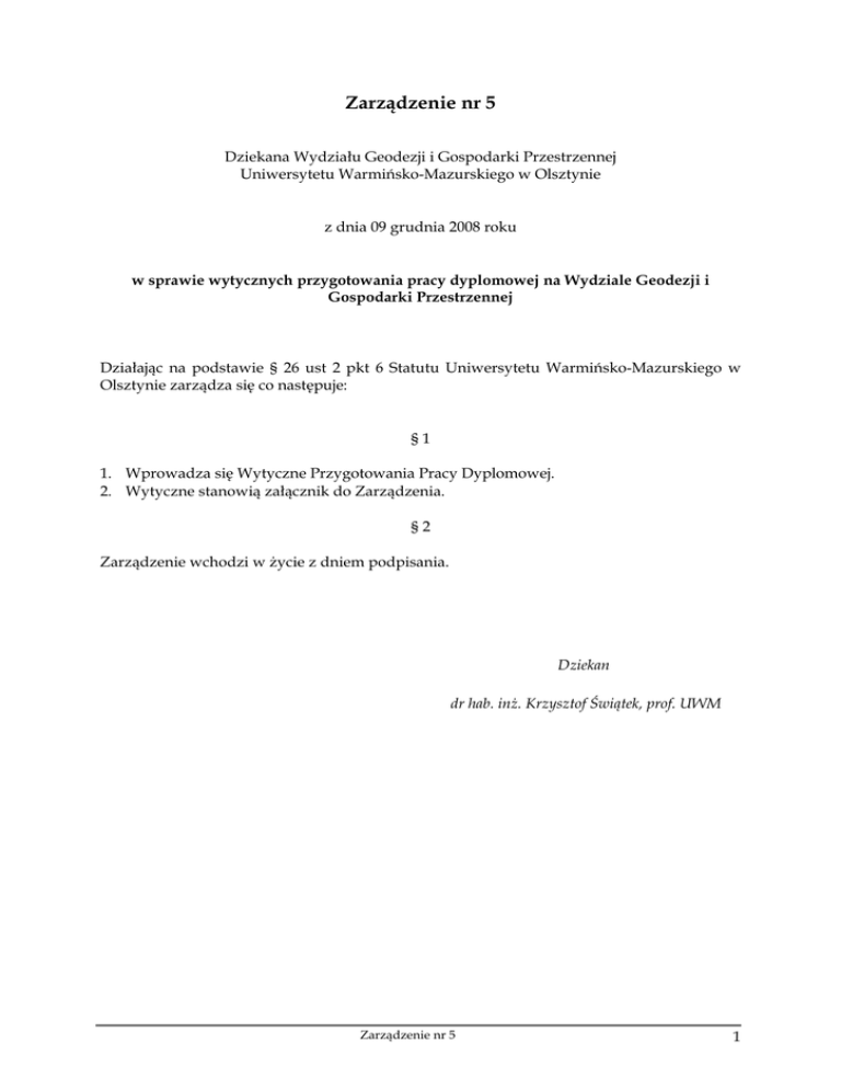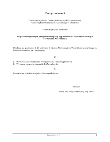 Zarządzenie nr 5 - Wydział Geodezji, Inżynierii Przestrzennej i
